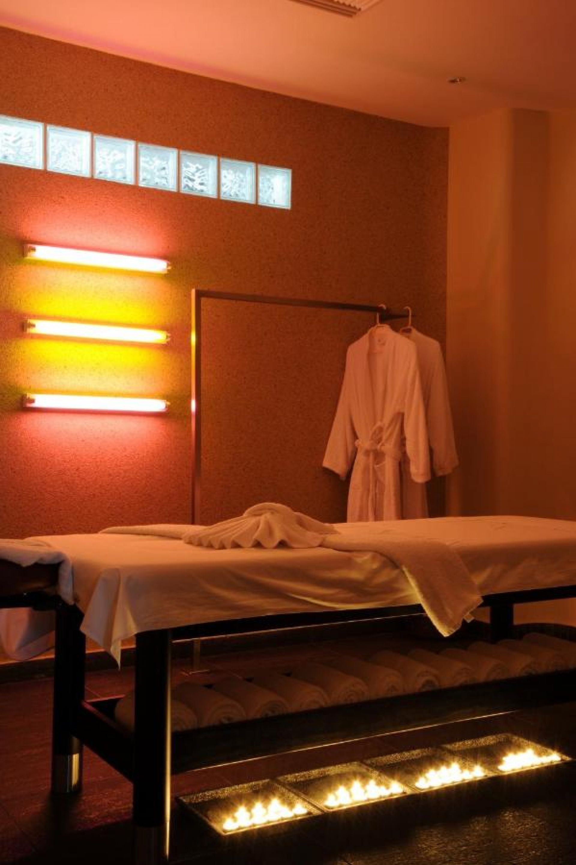 Спа център и фитнес (срещу заплащане) в сградата на хотел Aressana.