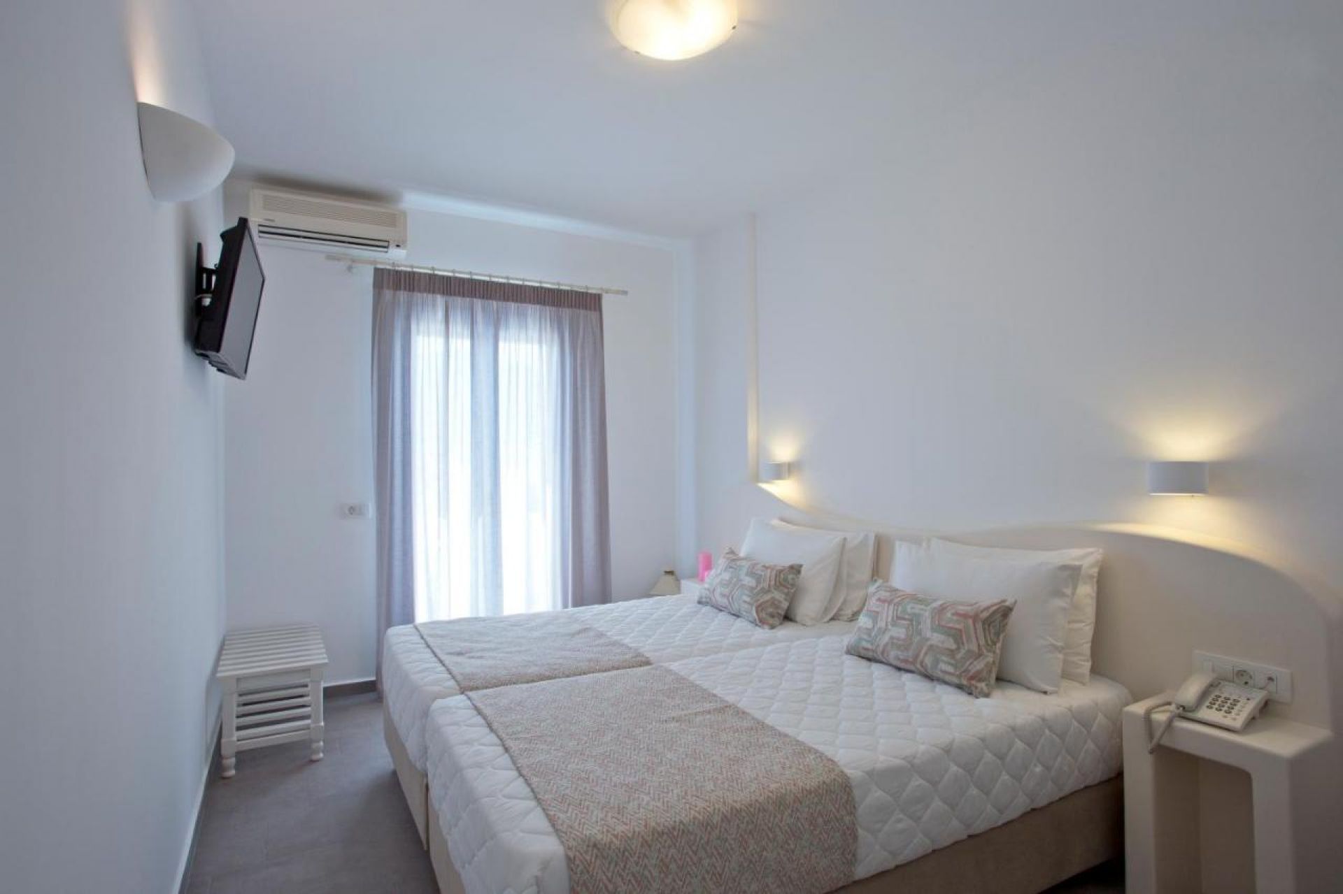 Хотелът разполага с 55 стаи, 9 студиа и 6 апартамента.Всички стаи са оборудвани с: климатик, тераса, баня с душ или вана, телевизор със сателитна/кабелна, телефон, минибар.