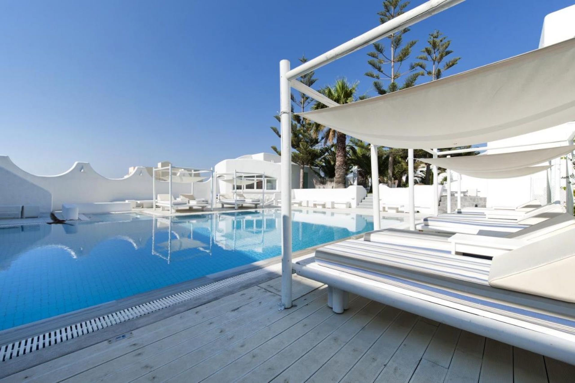 Хотелът се намира на 9 километра от летището, на 12 км от пристанище Athinios, на 15 км от живописното селище Oia, на 9 км от най-известният и добре организиран черен бряг на Камарата, в центъра на туристическото селище Фира. Местоположението на хотела е идеално за опознаването на Санторини и неговата уникална красота. Голяма част от бляскавите ресторанти, барове, магазини на централния площад в Фира се намират в непосредствена близост до хотела.