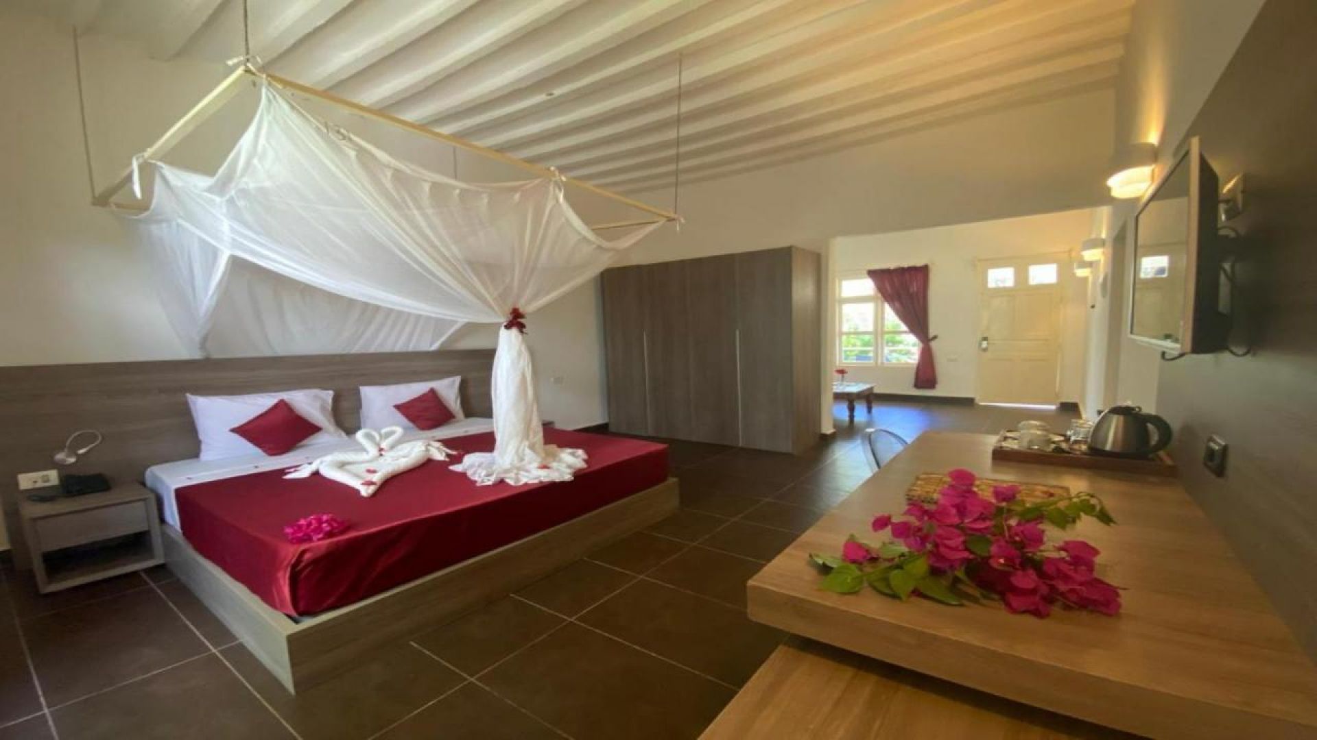 Стаите с изглед към градината, разполагат с балкон или тераса, климатик, мрежа против комари. Във всяка стая има телевизор с плосък екран, телефон и минибар.