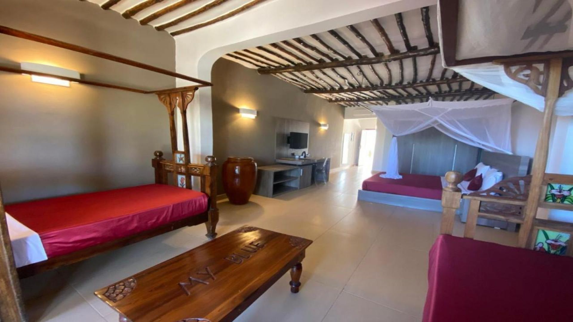 А-ла-карт ресторант на плажа “Mwezi”: Ресторант „Mwezi Beach“ се намира на плажа и предлага същото обслужване като основния ресторант. Работи с предварителна резервация.