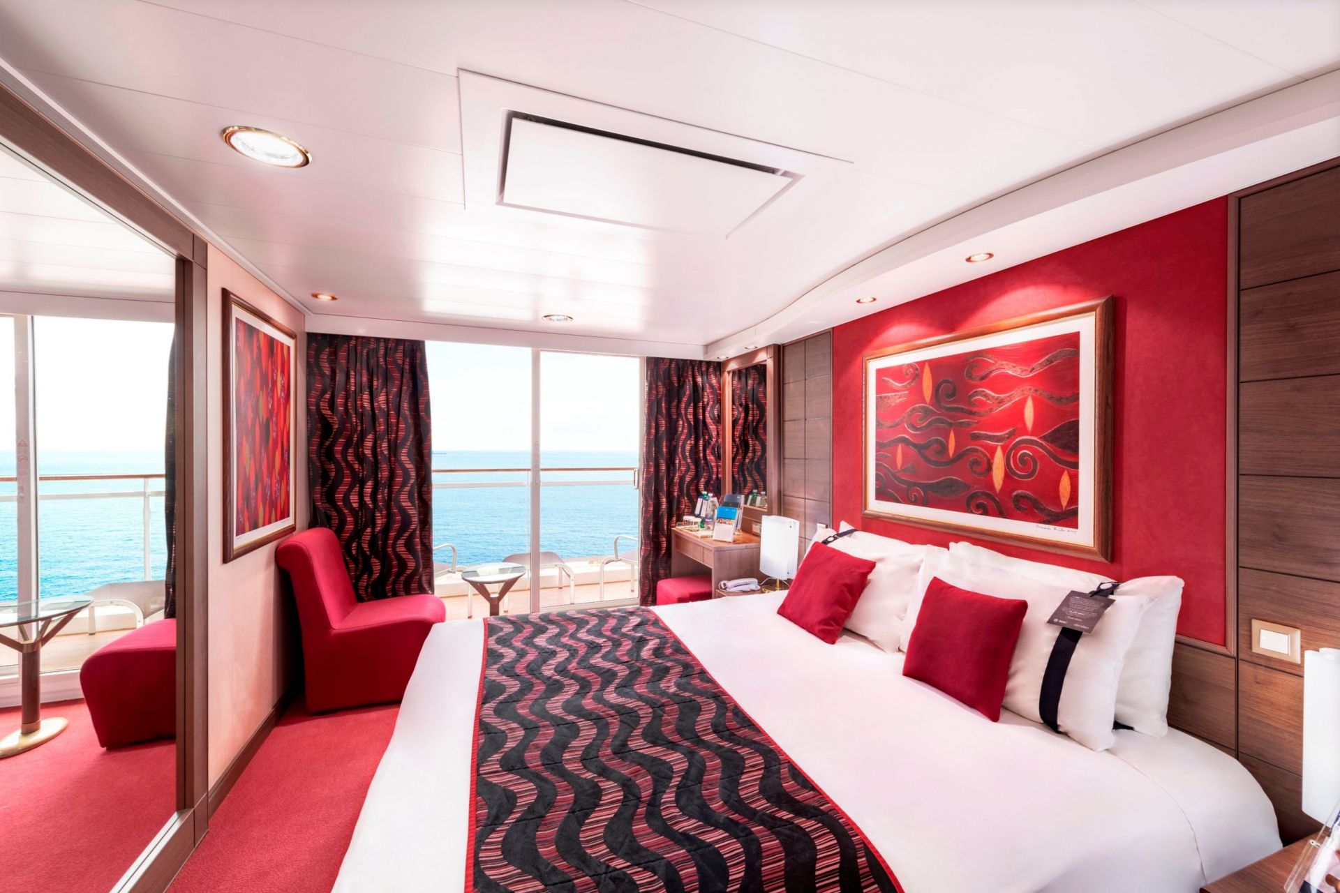 Суити с джакузи, каюти с балкон, каюти с прозорец /не се отваря/, вътрешни каюти, каюти за инвалиди. Всички със сателитна ТВ, телефон, сейф, сешоар, климатик, минибар. Интернет и рум сървиз срещу заплащане. Повечето разполагат с диван, който се превръща в трето легло или 2 легла една над друго за настаняване на 2 деца.