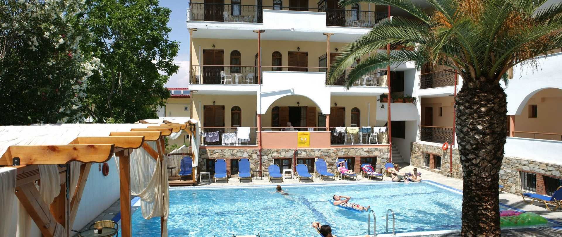 Разположение: Хотелът се намира на първия ръкав Касандра на Халкидическия полуостров, на 150 м. от плажа и в центъра на селището Ханиоти. Хотел Калипсо е с традиционна гръцка архитектура и предлага комфорт на своите гости.