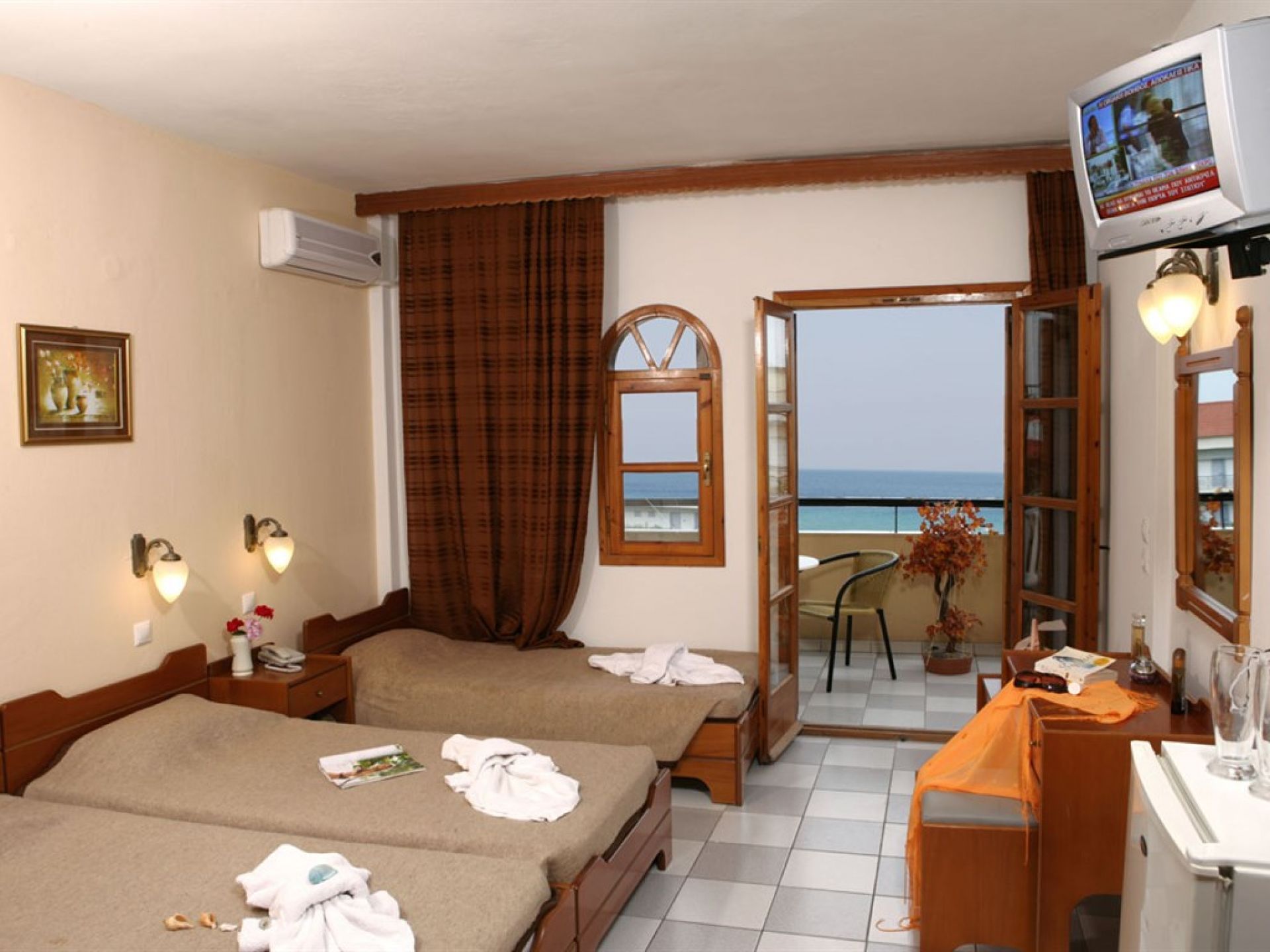 Стаи: 77 стаи (60 двойни, 3 единични и 14 тройни) с климатик, телевизор, хладилник, балкон, баня, сешоар.
