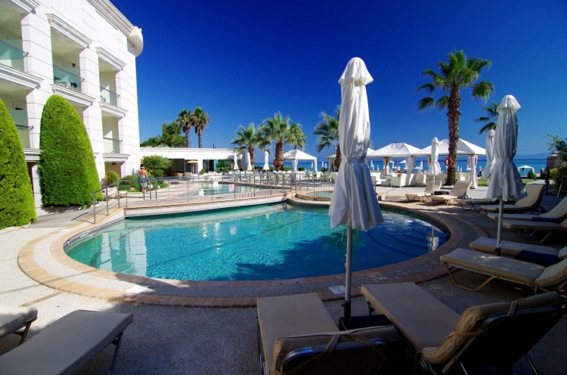 Разположение: Намира се на брега на морето в един от най-оживените курорти на Касандра – Ханиоти. Състои се от 86 луксозно обзаведени стаи и суити.