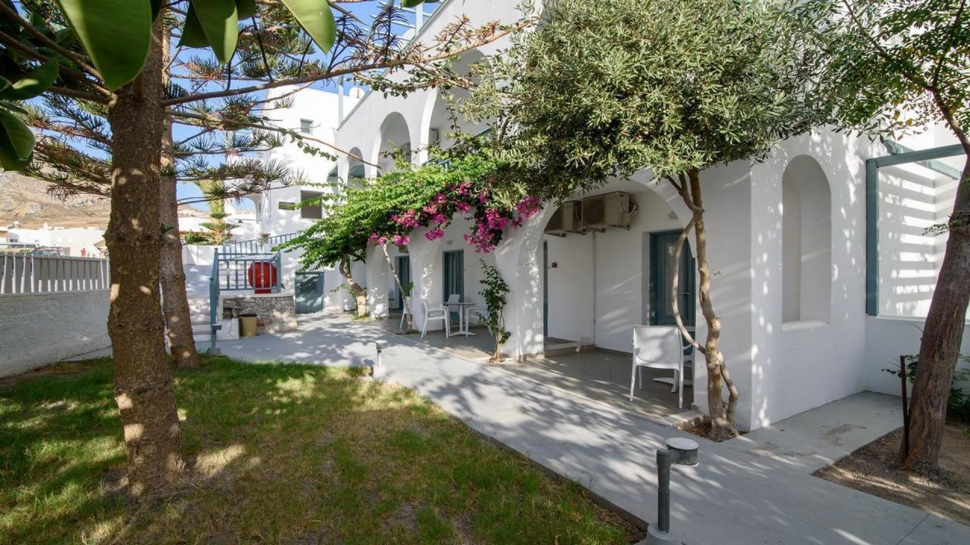 Хотелът се състои от 2 сгради и е построен в модерна цикладска архитектура с много влияния от природата, наскоро реновиран. Намира се в много тих район, на 150 метра от плажната алея, където можете да намерите ресторанти, магазини и барове или просто да се разходите до плажа, за да се отпуснете. Хотелът предлага голям плувен басейн със снек бар, отворен през целия ден.