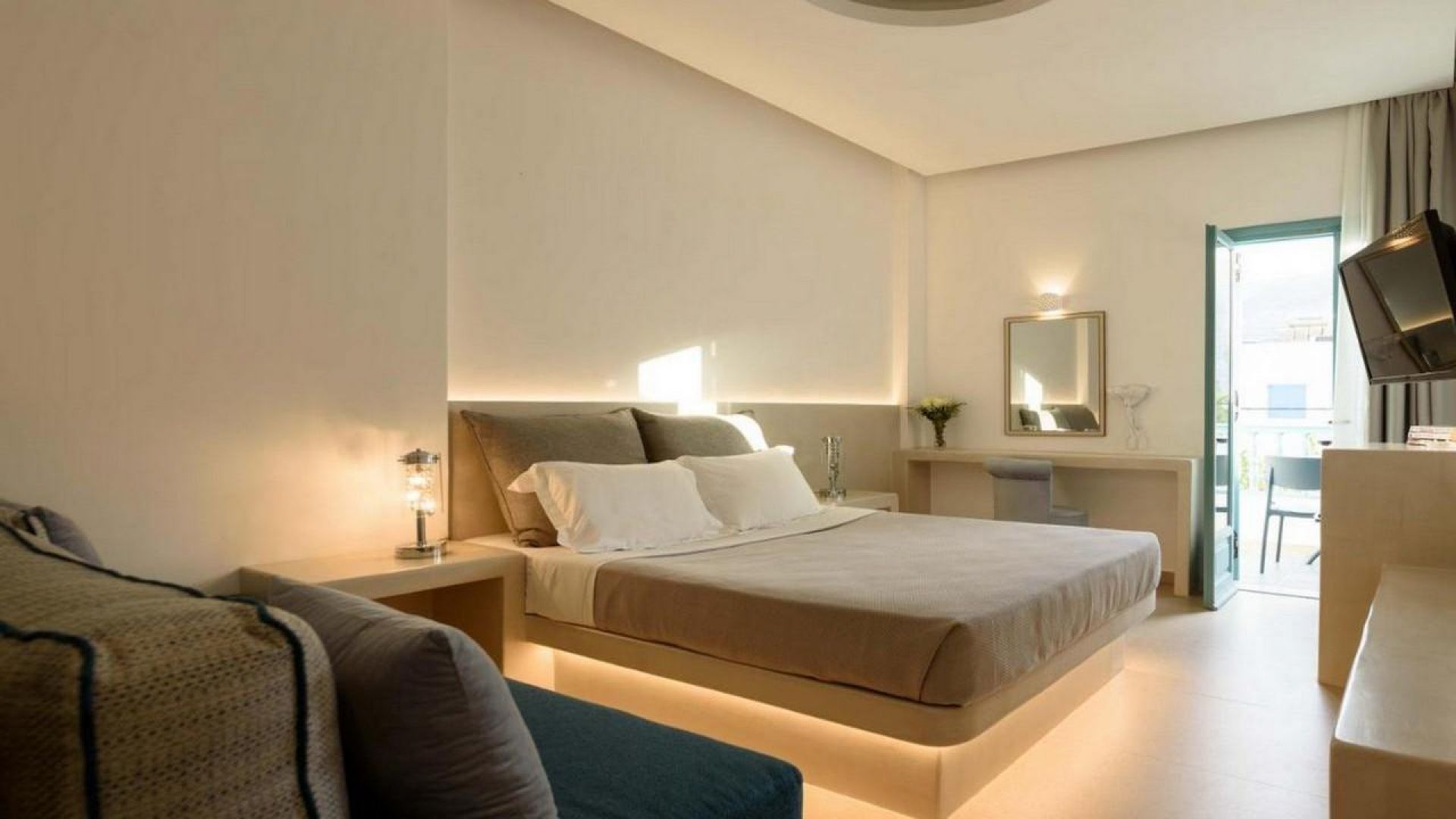 На 50 м от хотела може да намерите плаж, който има гладък черен пясък и е награден със син флаг. На същото разстояние можете да се насладите на живописни таверни или на космополитни нощни клубове с гледка към безкрайното море.