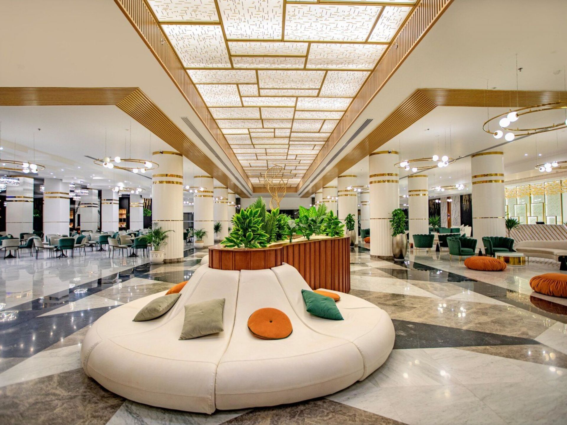 Основен ресторант, 4 а-ла-карт ресторанта (с предварителна резервация, съгласно концепцията на хотела) 4 бара, открит басейн (отопляем през зимата), аква парк с 2 пързалки, СПА център.