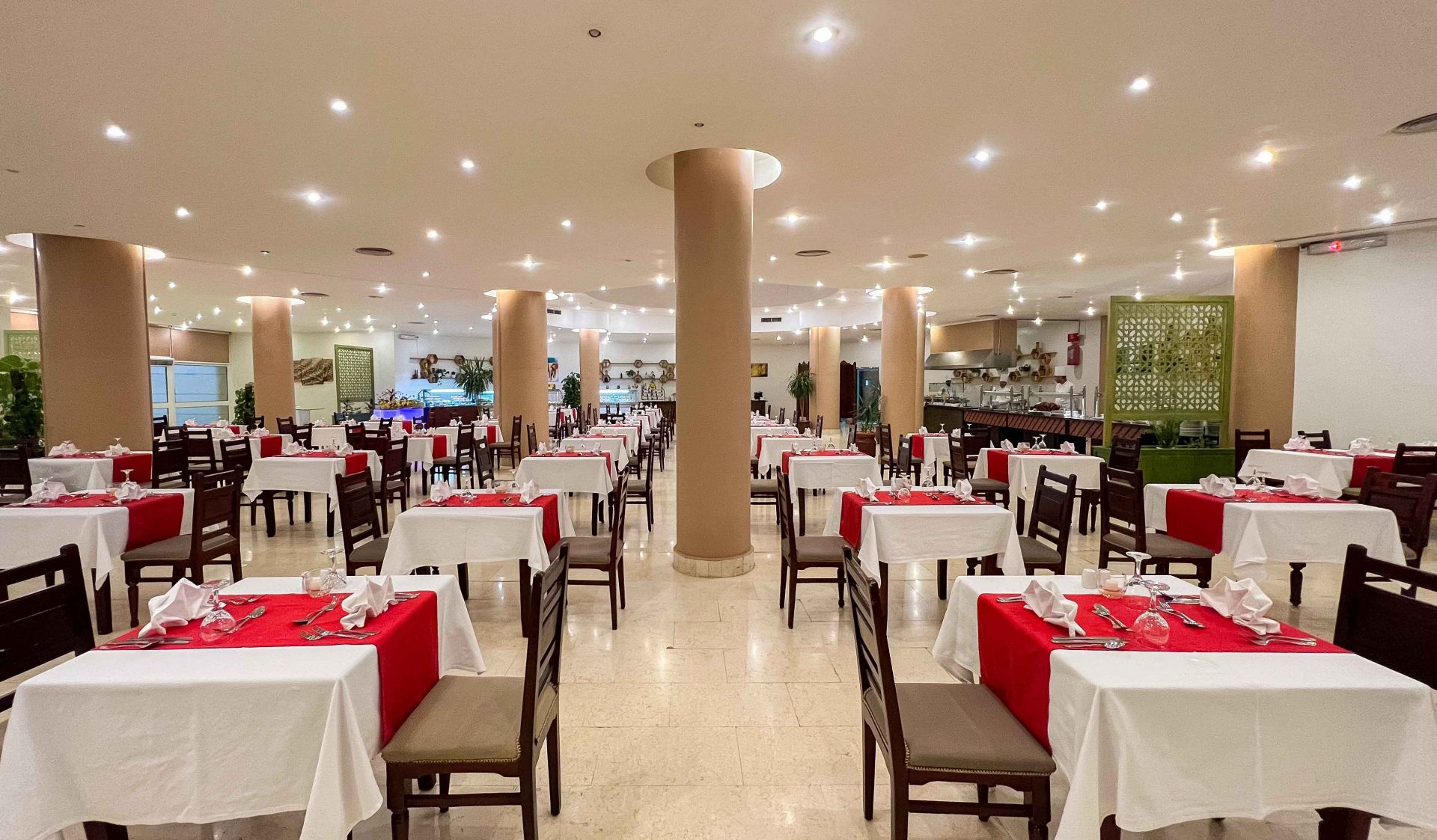 Основен ресторант La Luna, пицария, лоби бар, бар басейн (срещу заплащане), бар на плажа (срещу заплащане), 2 открити басейна, магазини, паркинг, лека анимация, денонощна рецепция, СПА център, салон за красота.
