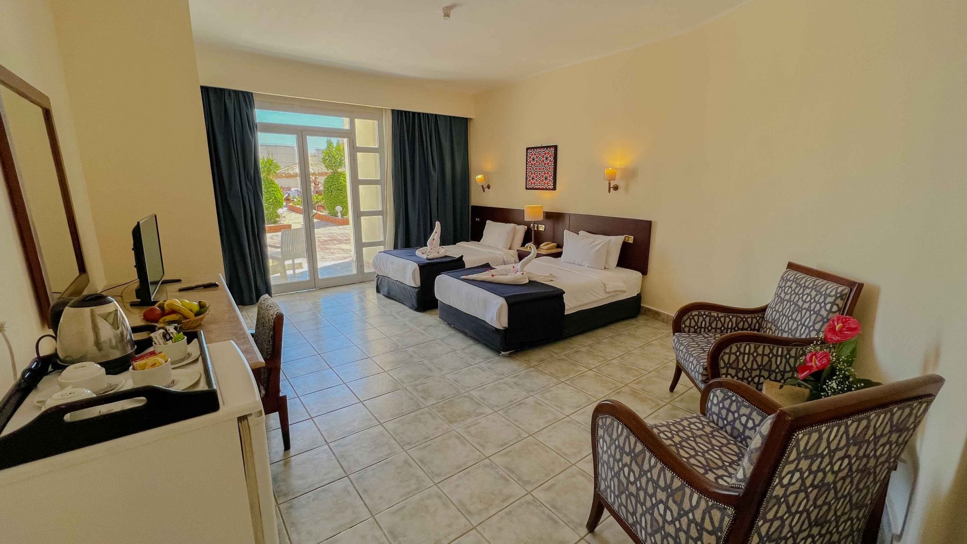 Всички стаи са оборудвани с климатик, телевизор, телефон, баня с вана/душ, тоалетни принадлежности, сешоар, сейф (безплатно), минибар, балкон или тераса.