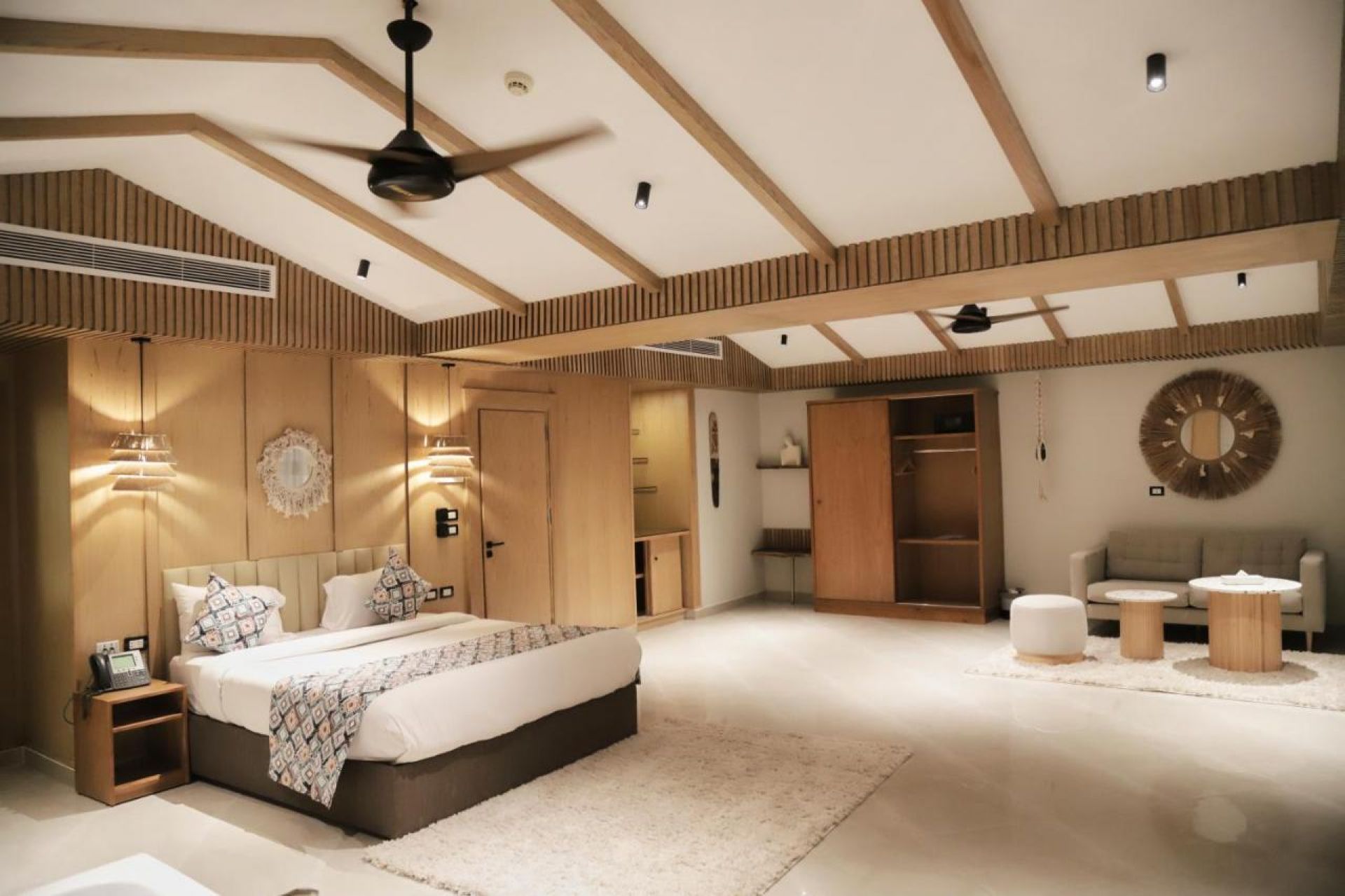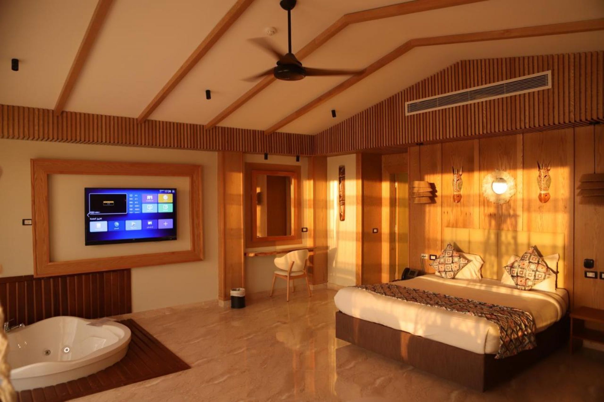 Хотелът разполага с общо 169 стаи, разположени в 4 триетажни корпуса и едноетажни бунгала. Всички стаи са оборудвани с климатик, телевизор, телефон, баня с душ, сешоар, минибар (платен), сейф (пплатен), балкон или тераса. Почистване на стаите и смяна на кърпите - всеки ден, смяна на спално бельо – 3 пъти в седмицата.