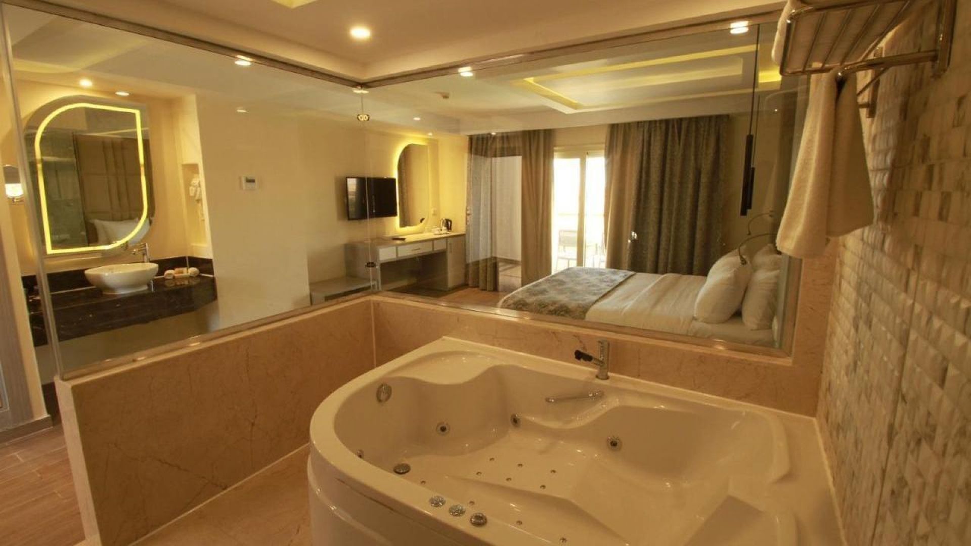 Bellagio Resort and Spa е адаптиран от стандартен тип хотел в луксозен стил стаи, фамилни стаи и специално проектирани апартаменти - всички с уникална гледка към морето, а някои се намират и между водите на Червено море. Внедрявайки най-съвременните хотелски технологии и удобства, хотелът гарантира, че Вашият престой ще бъде релаксиращ, като същевременно съчетава възможно най -доброто качество и комфорт, с автентичния аромат на Червено море.