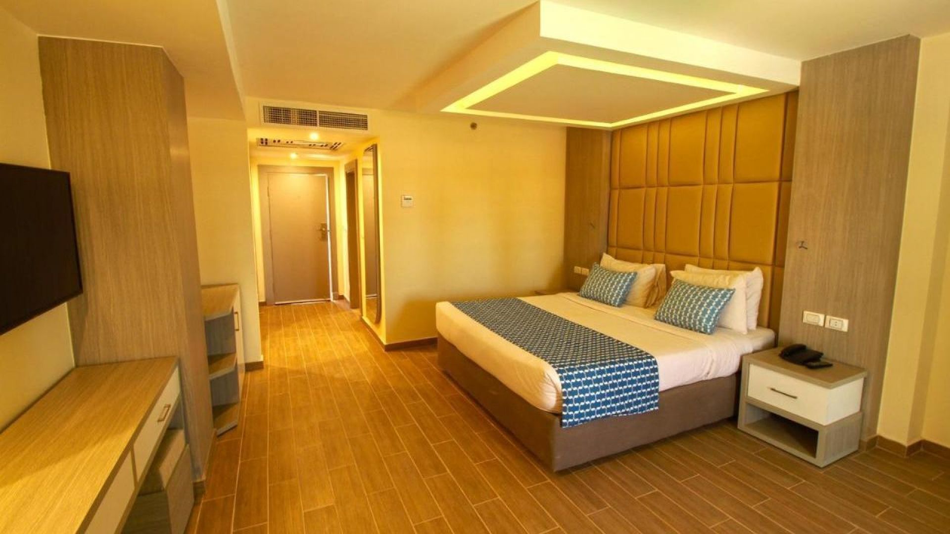 Приблизителна площ на стаята - около 28-32 кв.м. Разполага с телефон, сателитна телевизия, сешоар, сейф, мини бар - срещу допълнително заплащане, електрическа кана с чай и кафе, климатик, баня с тоалетна, балкон или тераса.