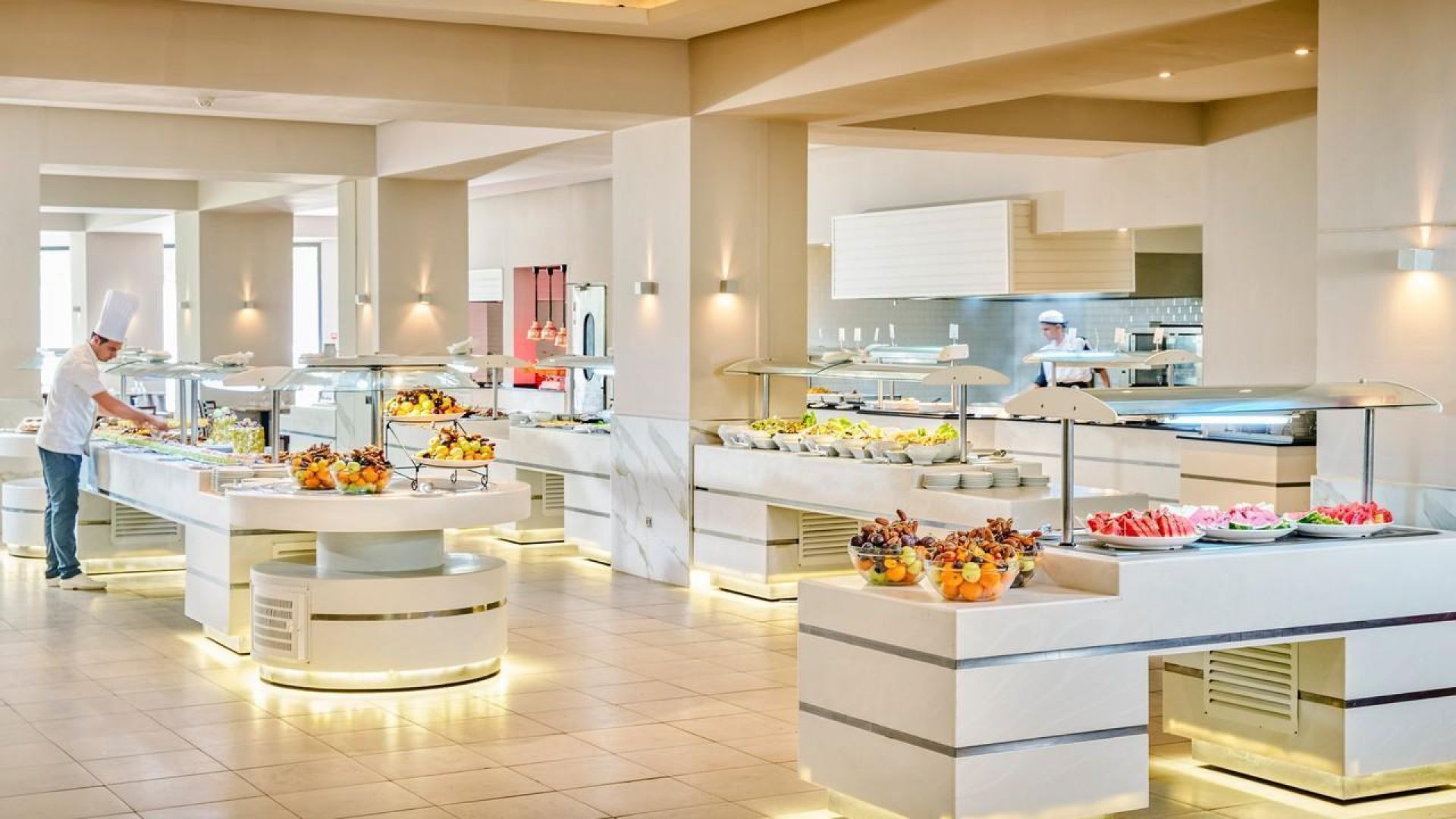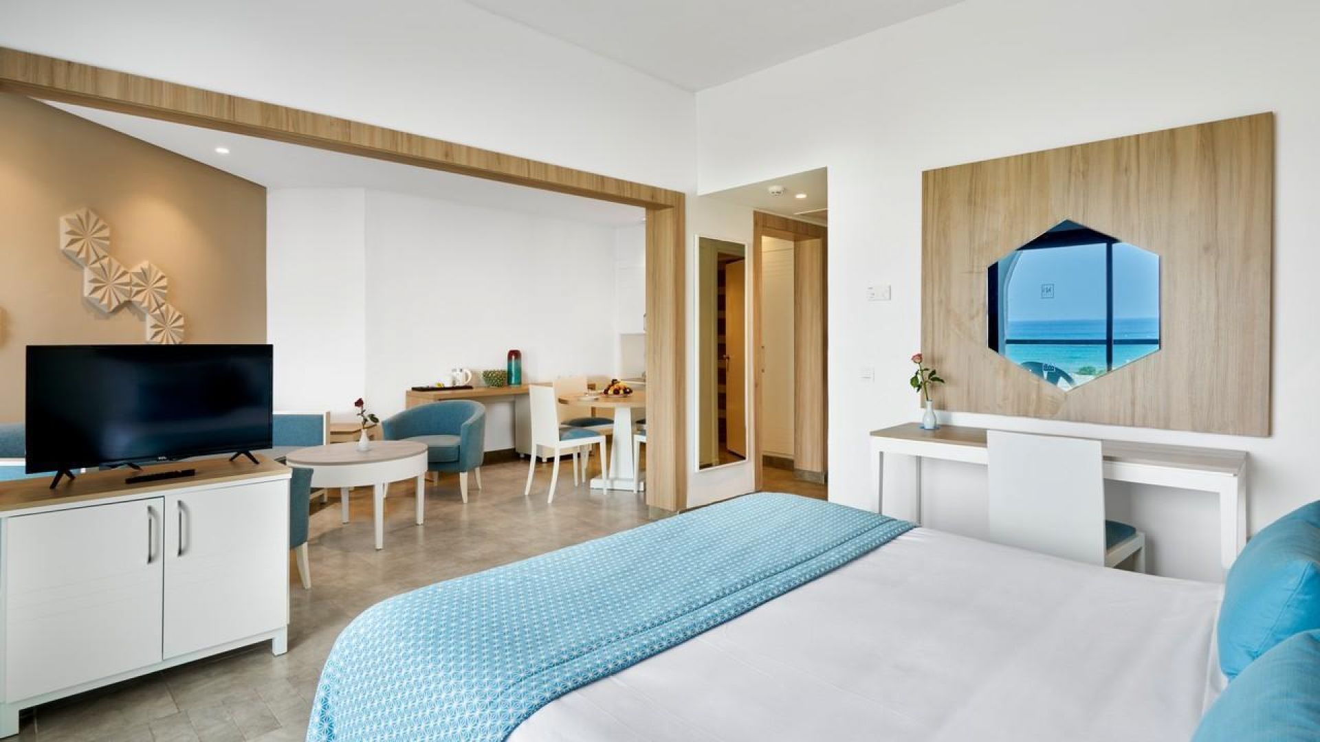Хотелът се състои от 1 основна сграда с 400 стаи, повечето, от които са с изглед към морето. Всички помещения разполагат с: