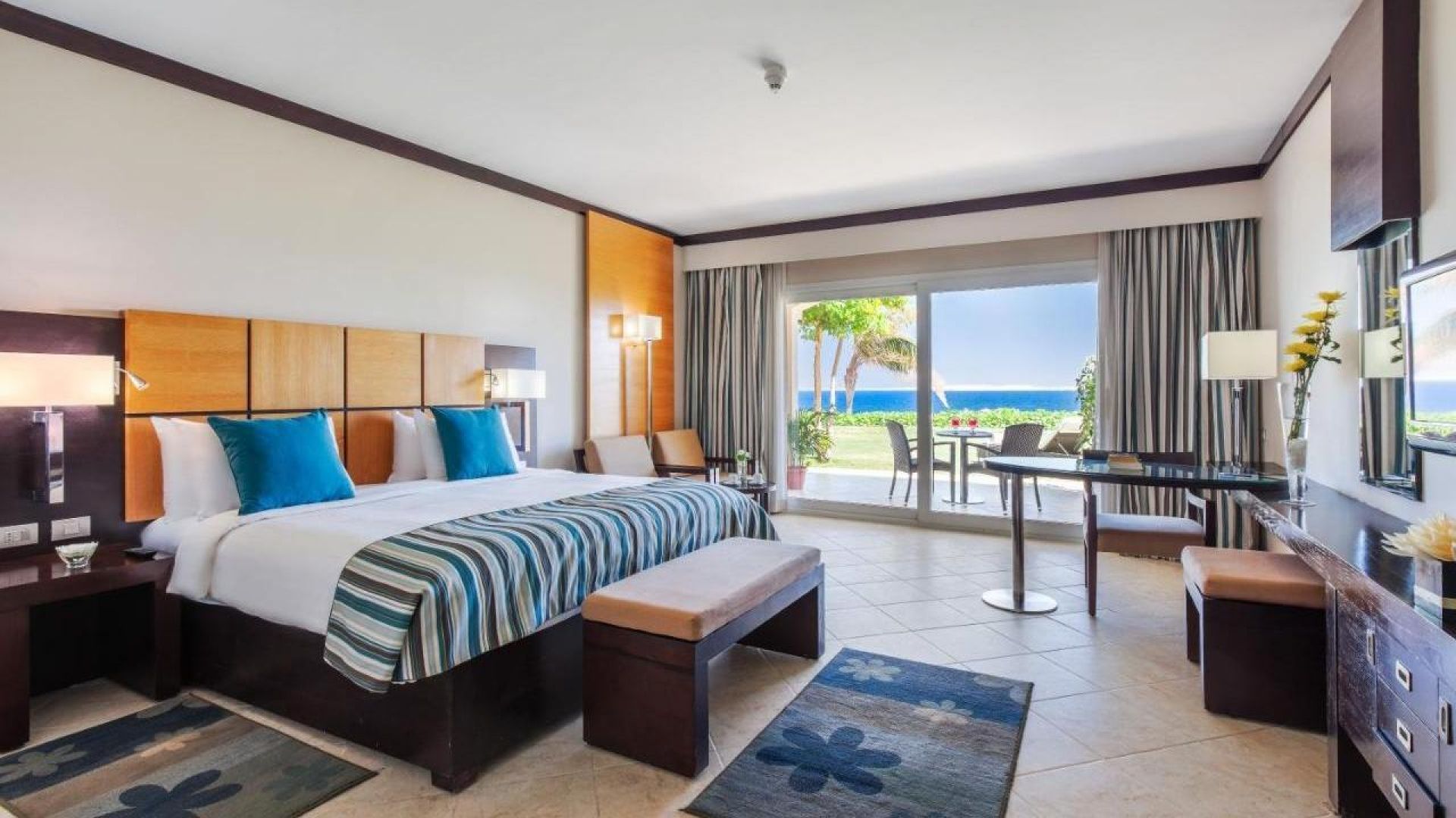 - Superior Room - Супериор стаи с изглед към градина, басейни или гледка към море, предлагат 38 кв.м пространство и се предлагат с избор на гости от едно двойно легло 2m x 2m или две единични легла по 130 x 180.