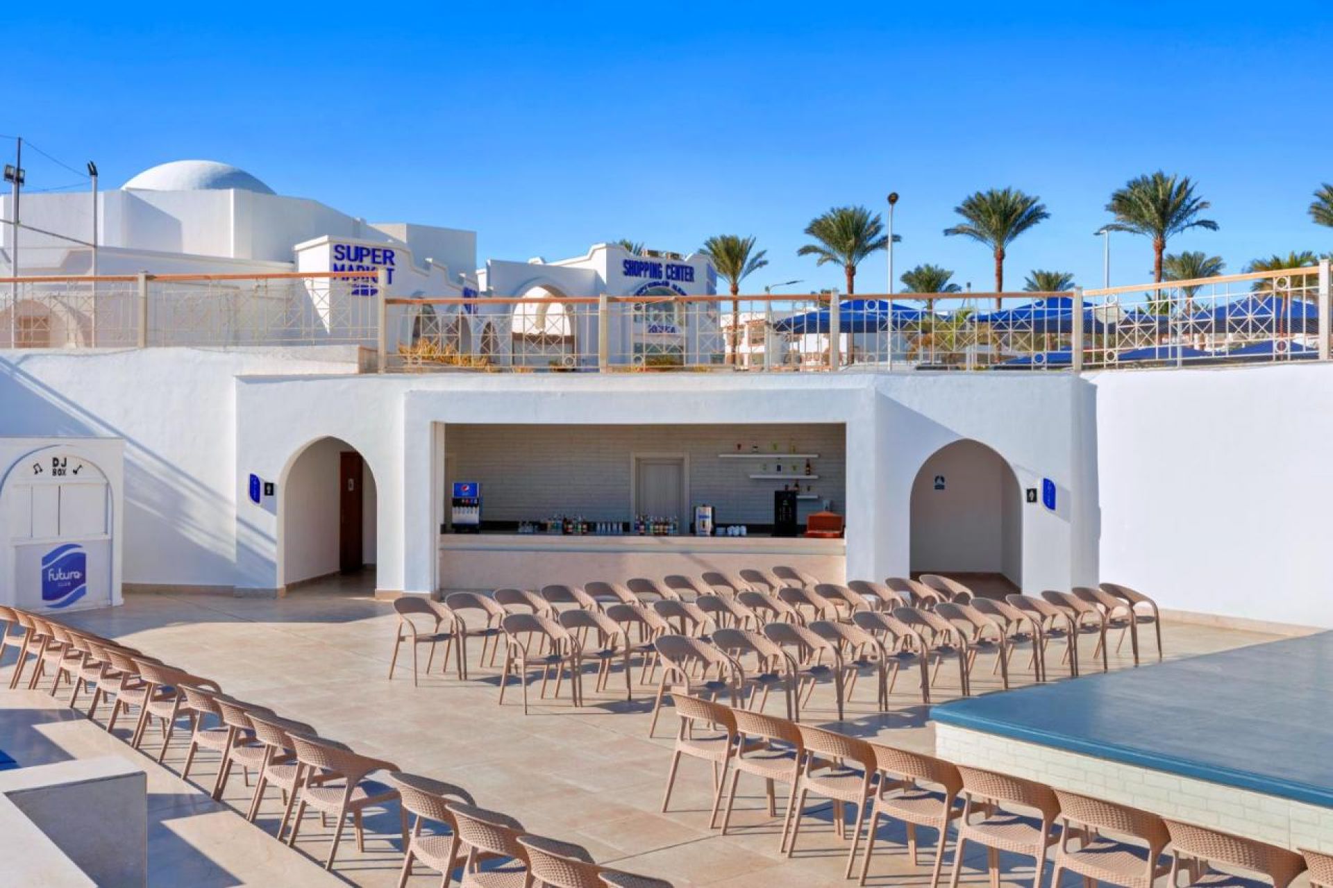 5 Основни ресторанта, 1 а-ла-карт ресторанта (италиански–1 безплатно посещение при минимум 7 нощувки), снек ресторант, 8 бара, 11 открити басейна ( 6 от които са отопляеми), аквапарк със 7 пързалки за възрастни и 7 за деца, СПА център, амфитеатър, конферетна зала.