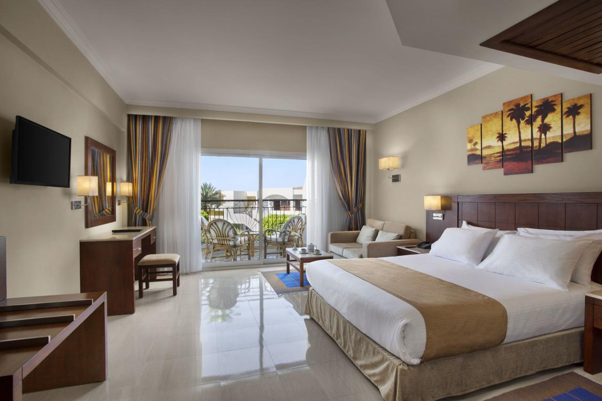 Намира се на 5 км от летище Шарм ел-Шейх, на 7 км от Наама бей, на брега на морето, върху площ от 105 000 кв.м. Реновиран през 2023 г.