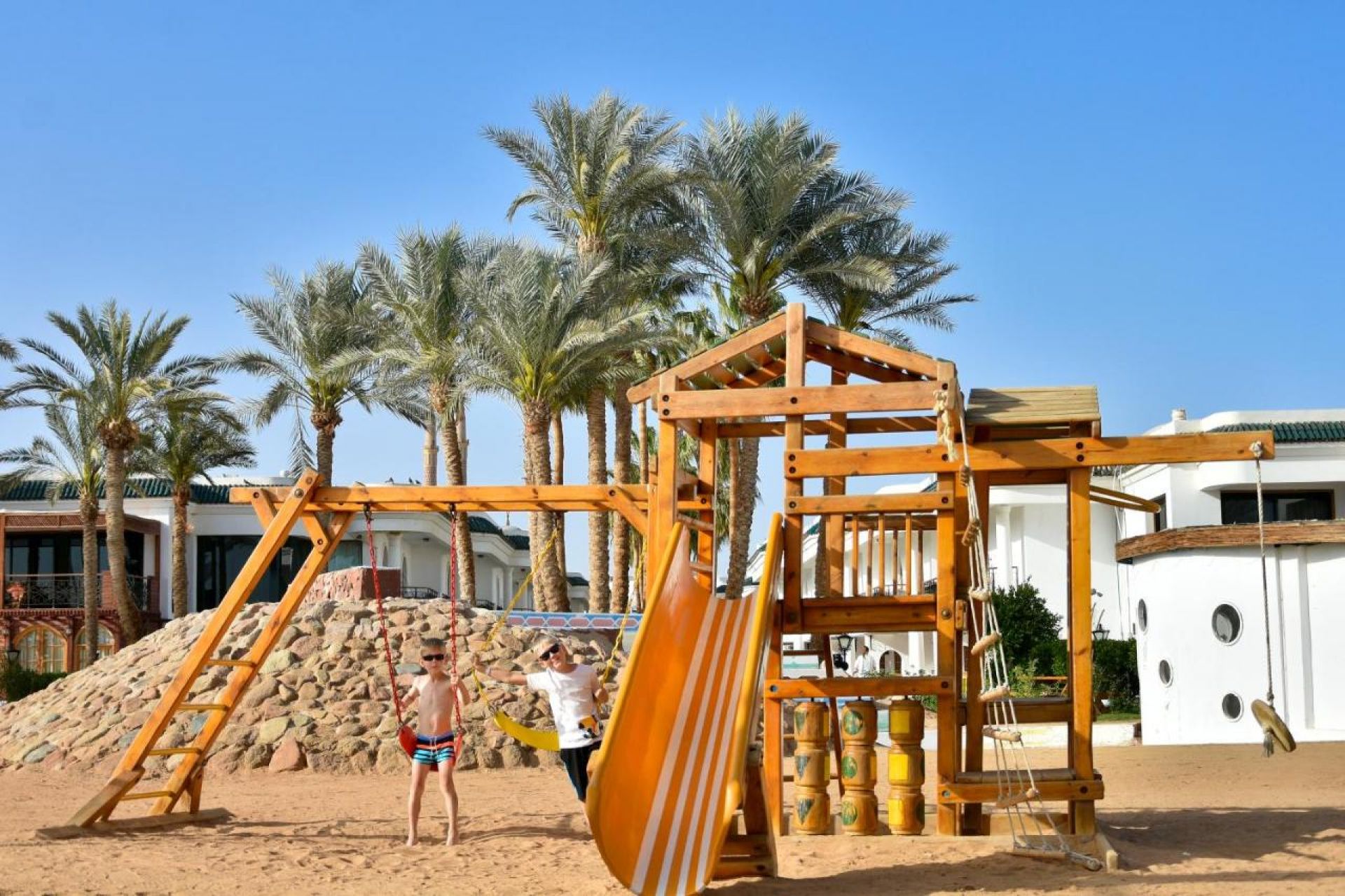За децата: детски клуб за деца от 4 до 12г (6 дни в седмицата), детски басейн, 3 водни пързалки, детска площадка, мини диско, детски столчета в ресторантите, бебешка кошарка (безплатно, при заявка), детско меню.