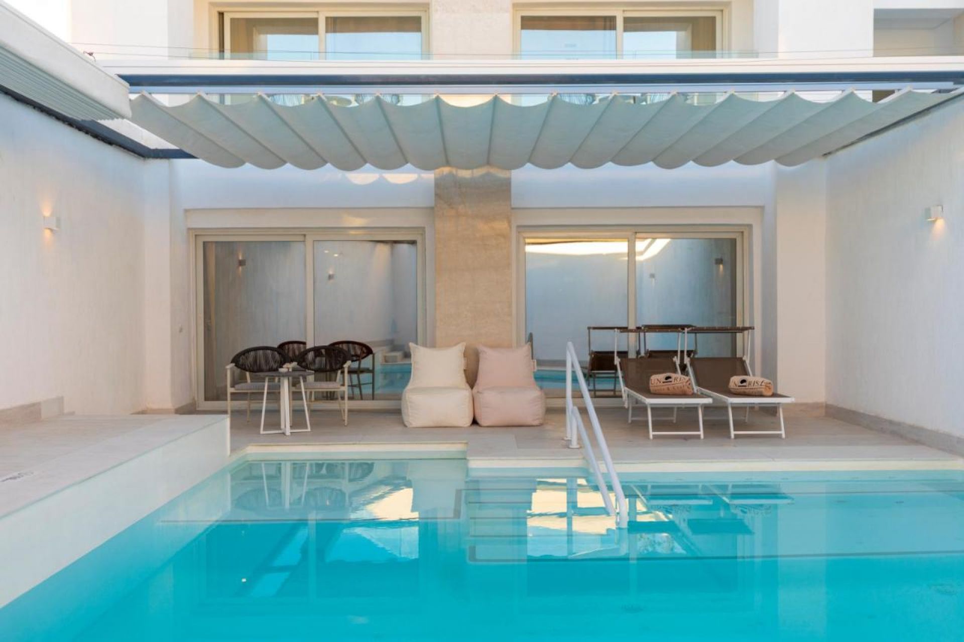 Собствен, коралов, кей. Чадъри, шезлонги и матраци на плажа и при басейна - безплатно.