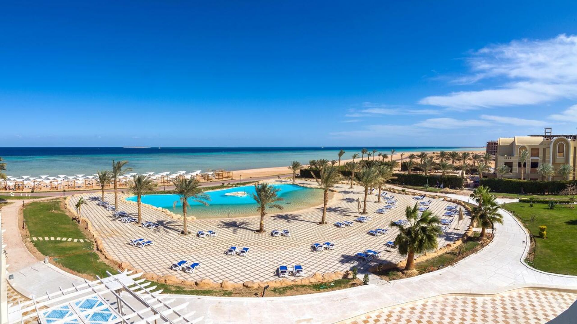 Намира се на 28 км. от летище Хургада, на 35 км. от центъра на Хургада, на брега на морето. Построен през 2019 г.