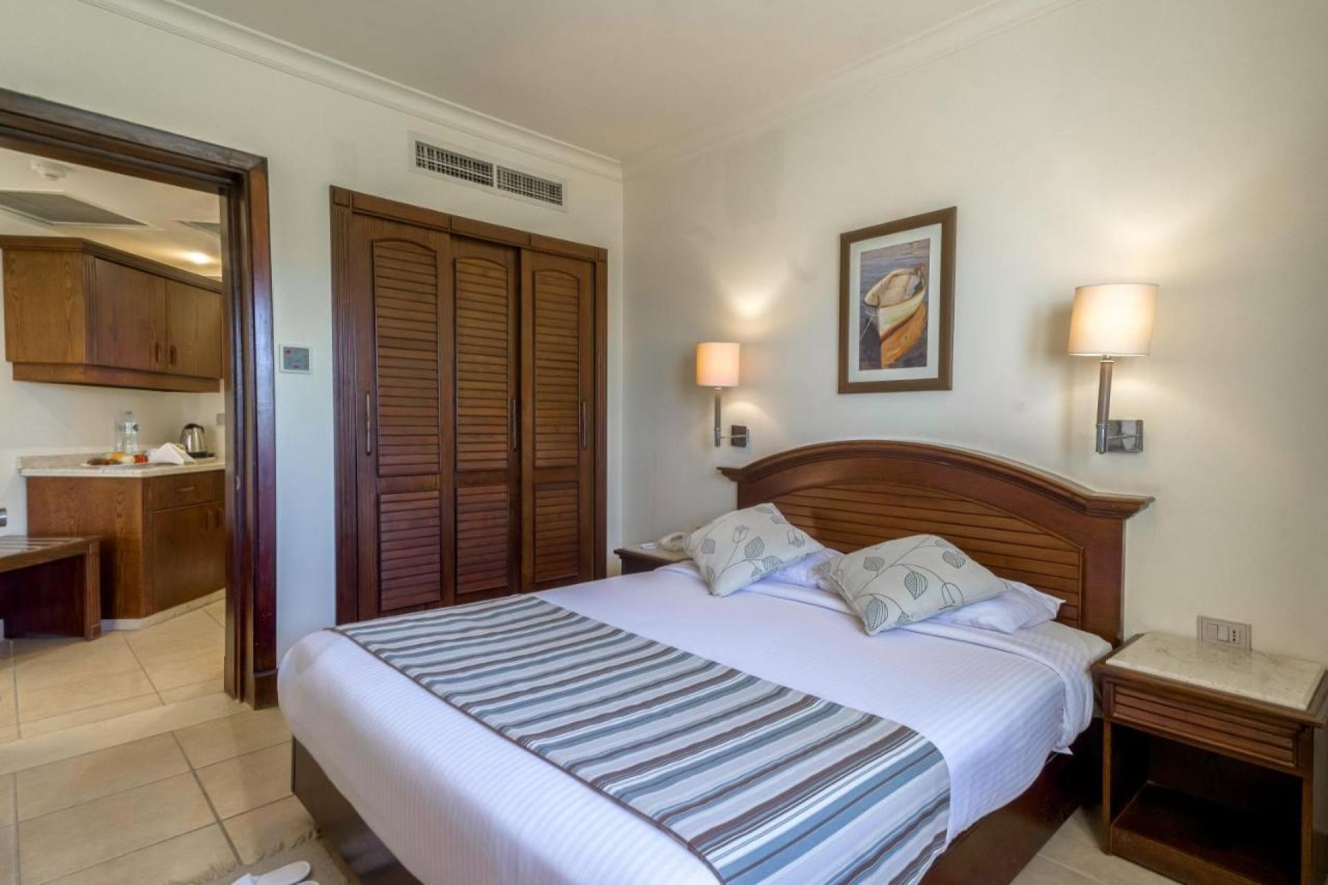 Хотелът разполага с общо 369 стаи, разположени в комплекс от едноетажни вили, от които 189 Classic room garden view (35 m2.), 136 Premium room garden view (38 m2), 55 family room (48m2.). Всички стаи са оборудвани с климатик, телевизор, телефон, баня с душ, сешоар, сейф (безплатно). Почистване на стаите и смяна на кърпите - всеки ден, смяна на спално бельо – 3 пъти в седмицата.