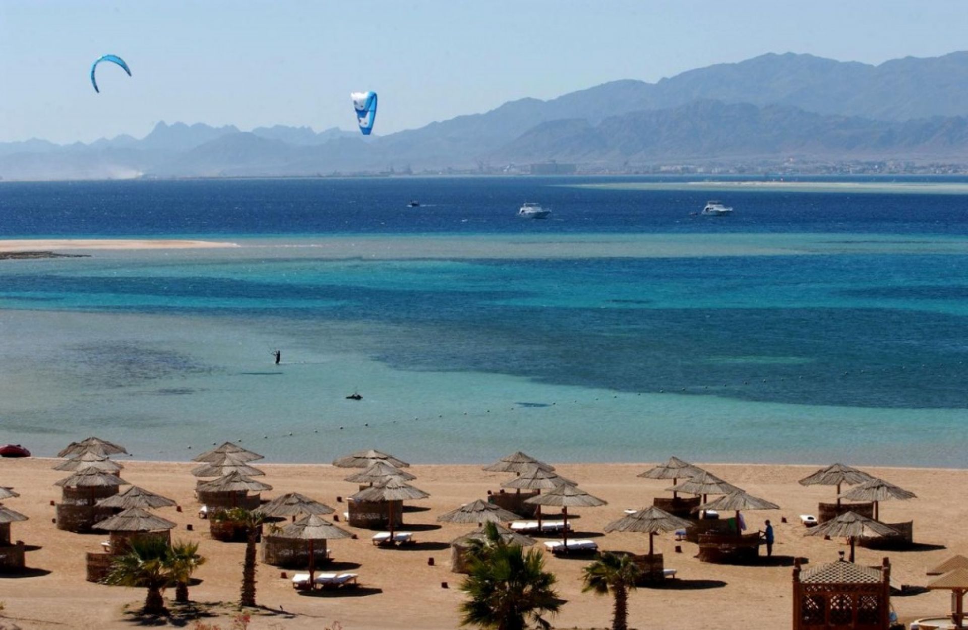 Собствен, пясъчен. Чадъри, шезлонги и матраци на плажа и при басейна - безплатно.