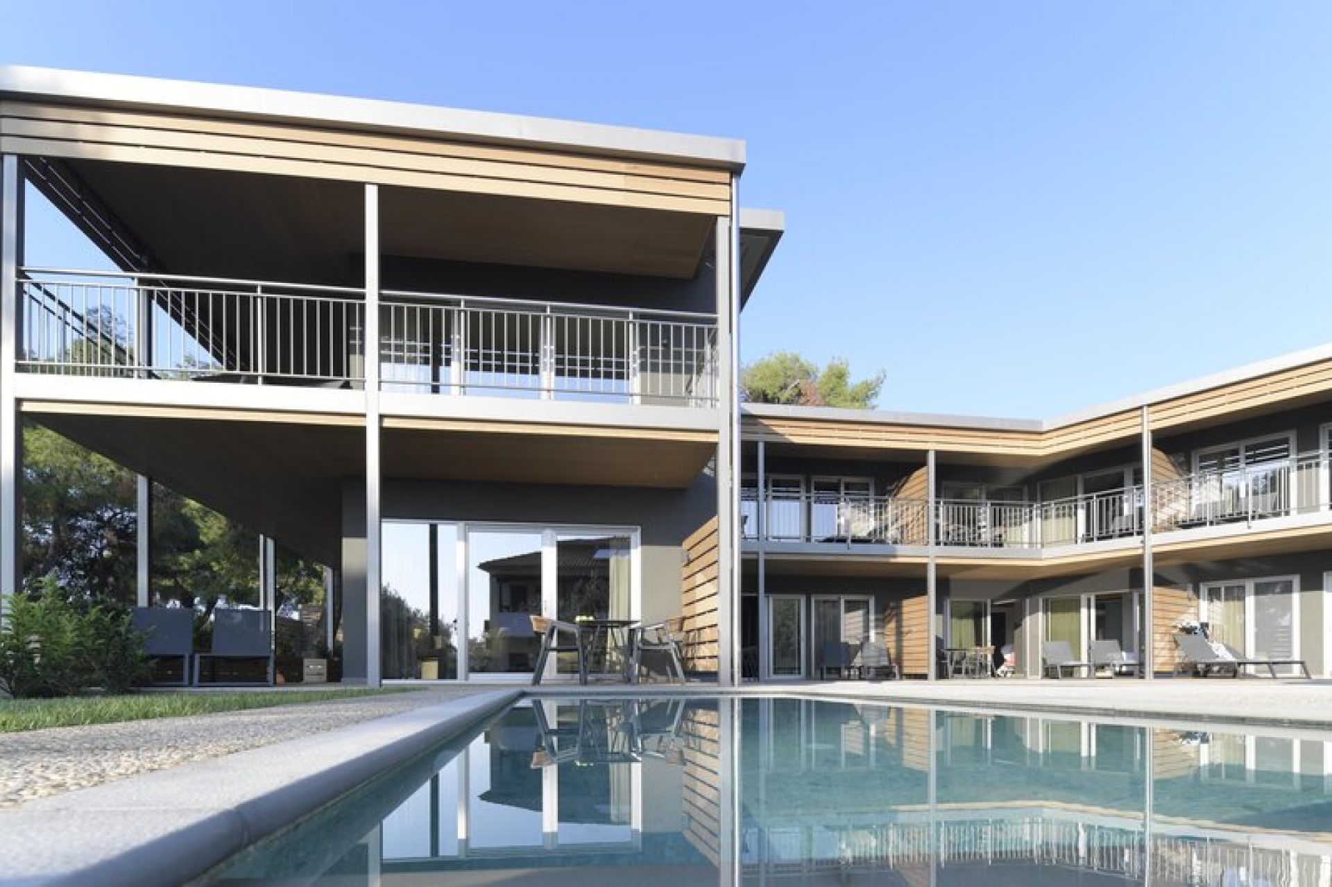 Разположение: Разположен е на брега на морето на п-ов Ситония, на 50 м от плажа, на 1 км от селището Метаморфоси и на 85 км от Солун.