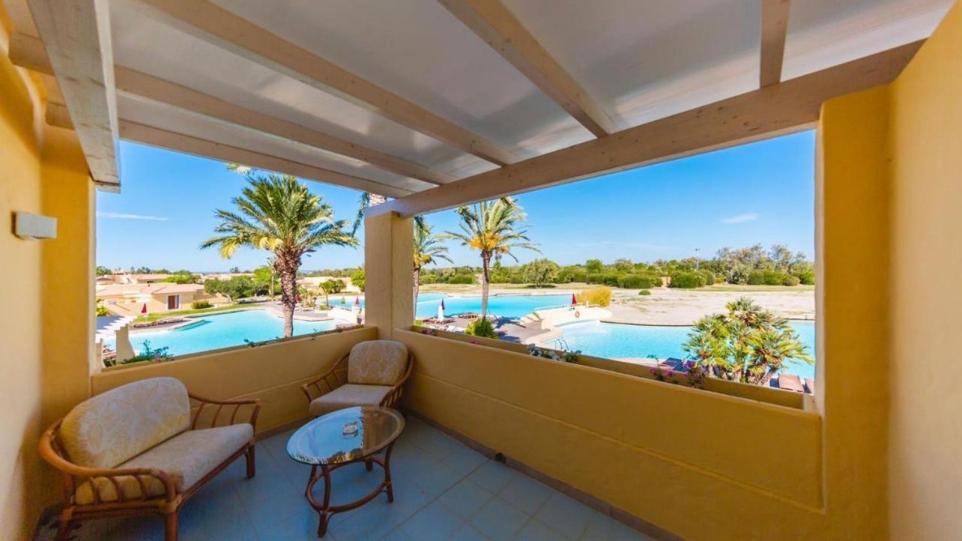 Парковото пространство на хотела е проектирано от известния италиански архитект Луиджи Виети, така че да има излаз към залива на курорта.