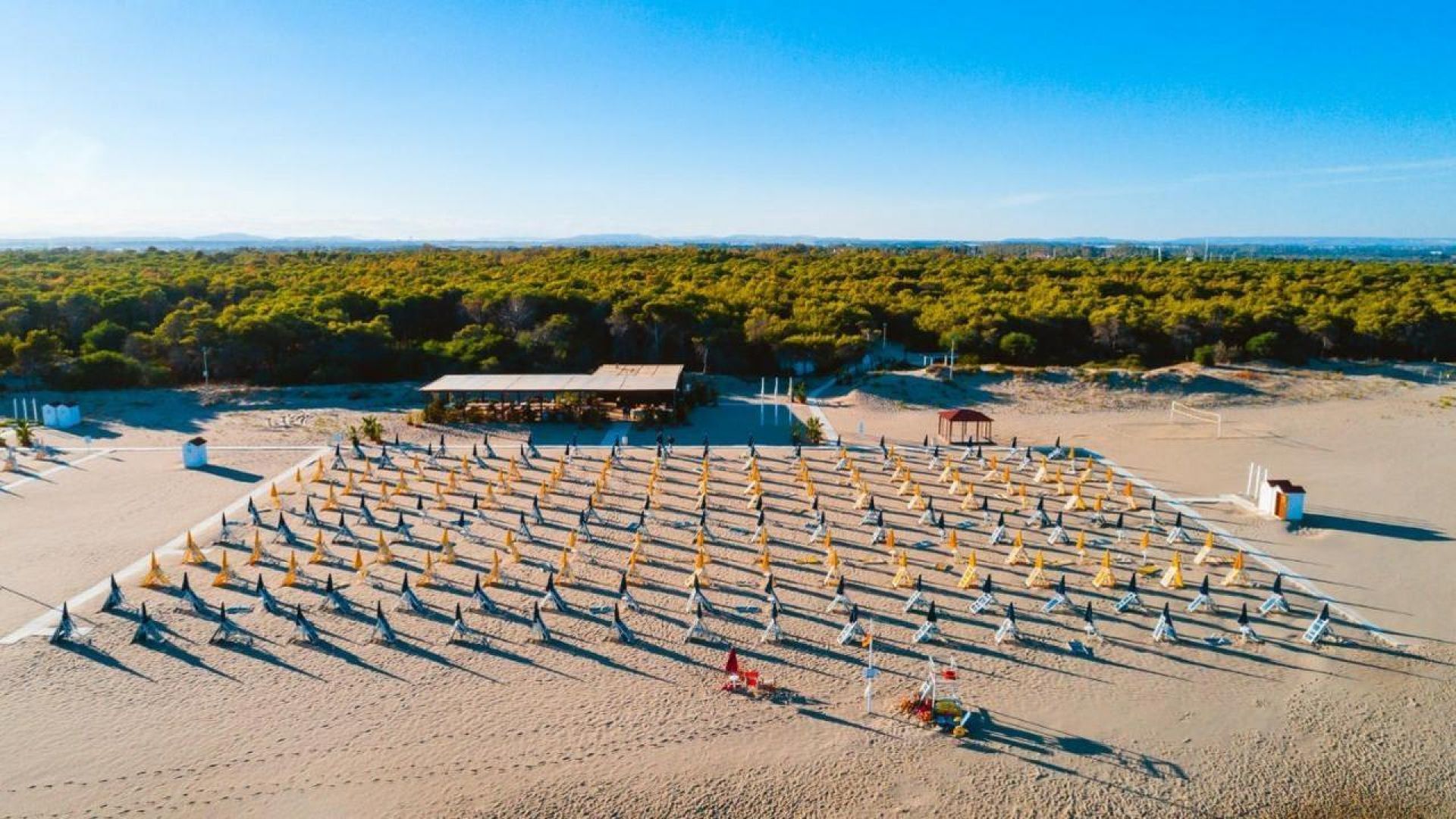 Плажът е част от комплекса с безплатни чадъри и шезлонги за клиентите. За да го достигнете, преминавате през прекрасна романтична зелена борова гора по обособени пътеки, или с минибусчета, които се движат през целия ден. Плажът е дълъг и широк, с фин пясък и безплатни чадъри и шезлонги.