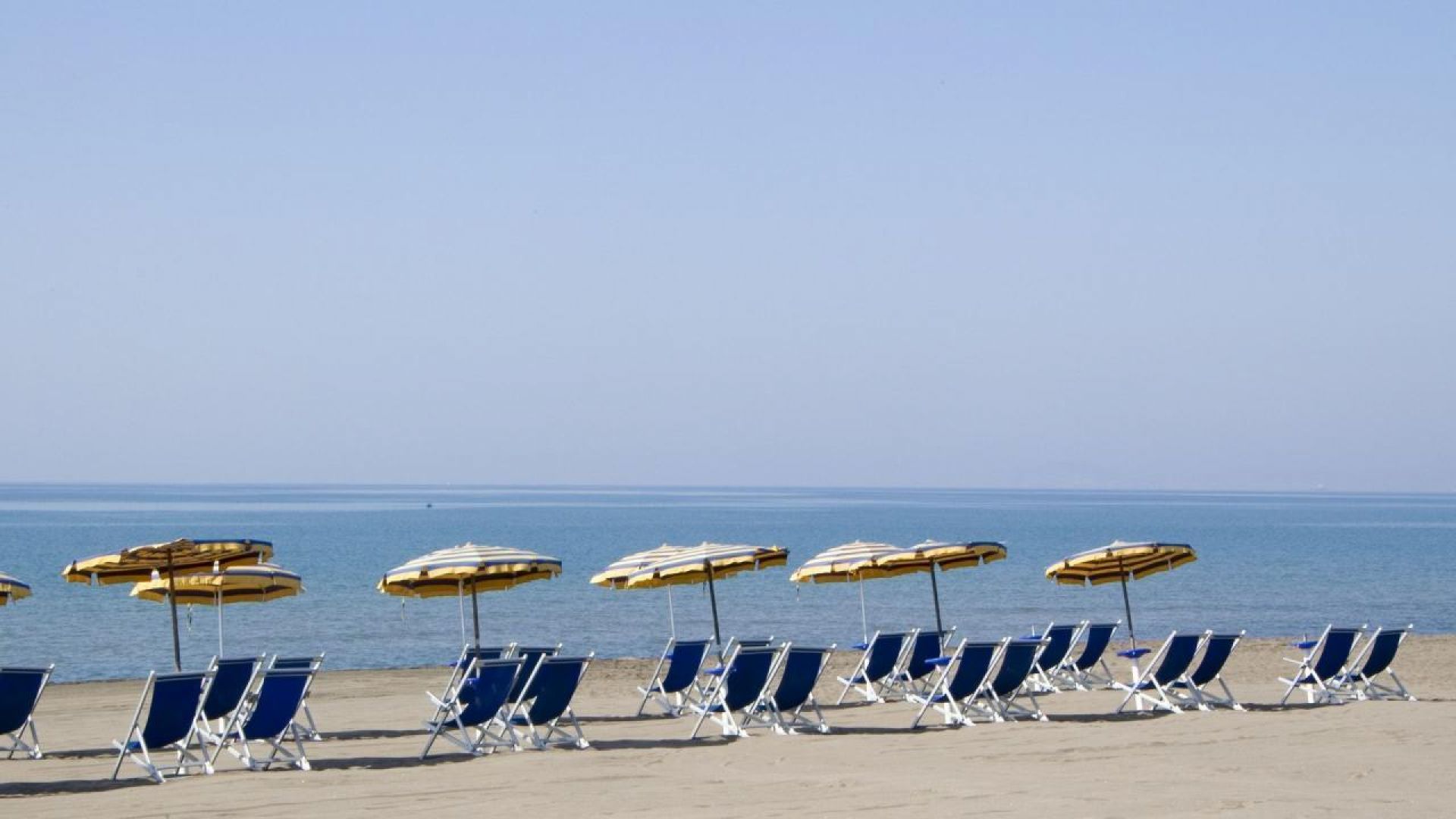 Хотелът разполага със собствен частен плаж - дълъг и широк, със ситен пясък. Чадърите, шезлонгите и плажните столове са безплатни за гостите на хотела. Номерата на чадърите се дават при настаняване и са валидни за целия престой.