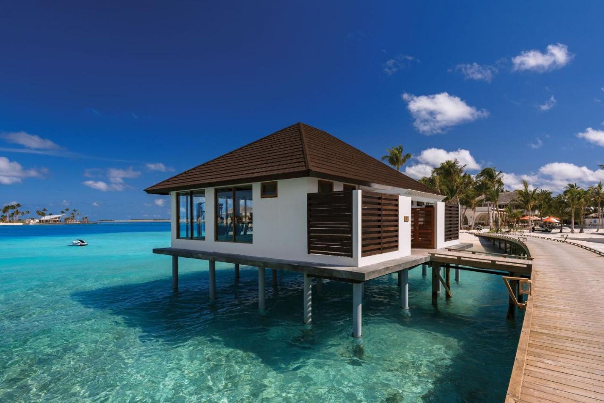 Water Villas with Pool (89 кв. м) – Съвременен дизайн с тропически елементи. Вилите разполагат с луксозна спалня със стъклени панели, отворена бабня с вана и незбравима гледка, както и със слънчева тераса със собствен басейн (8 кв. м).