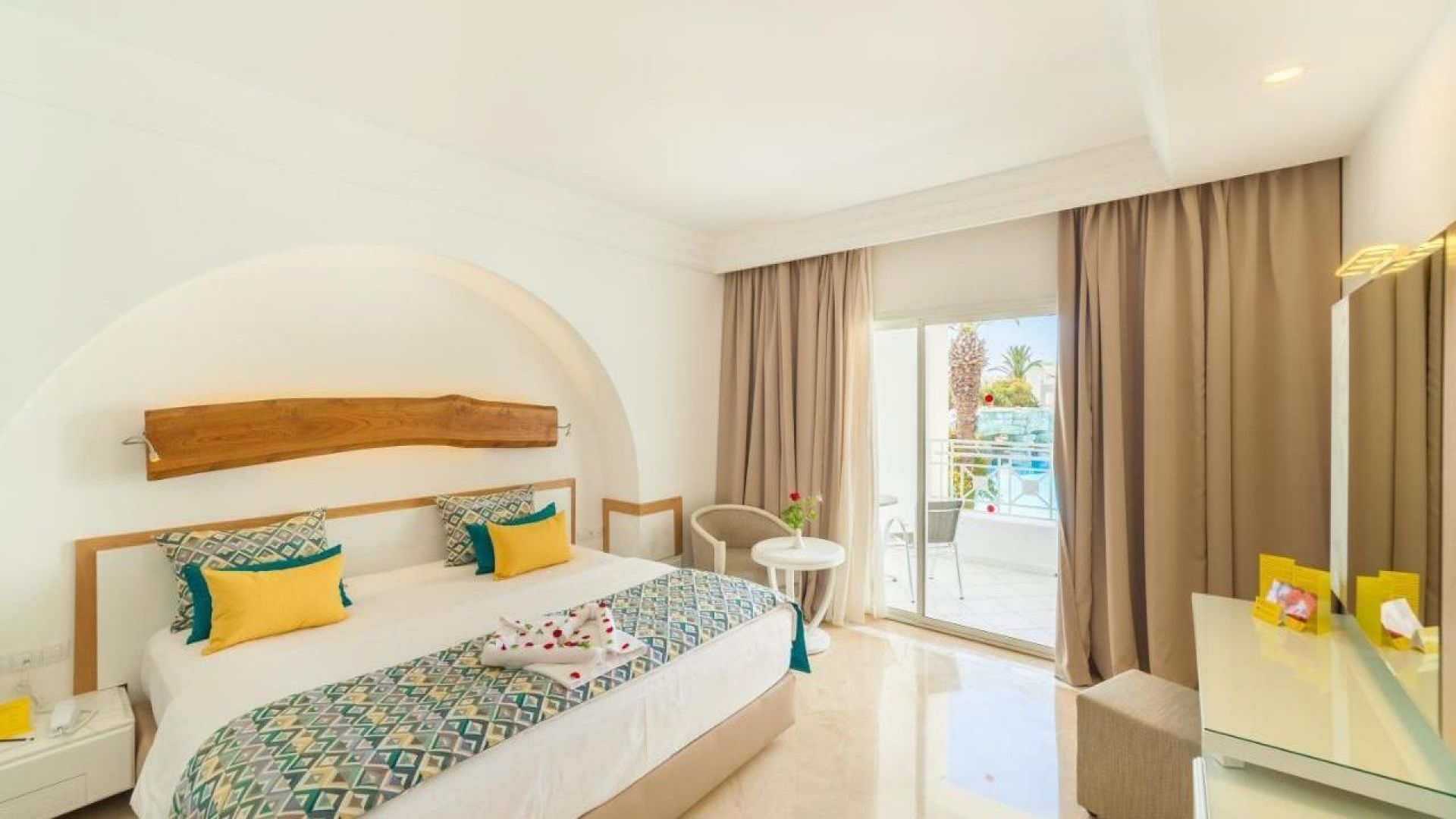 - Фамилна стая - 76 м2, максимално настаняване 4 възрастни + 1 дете, спалня + разтегателн диван, климатик, сейф, мини бар, Wi-Fi, мини бар, вана и душ, балкон.