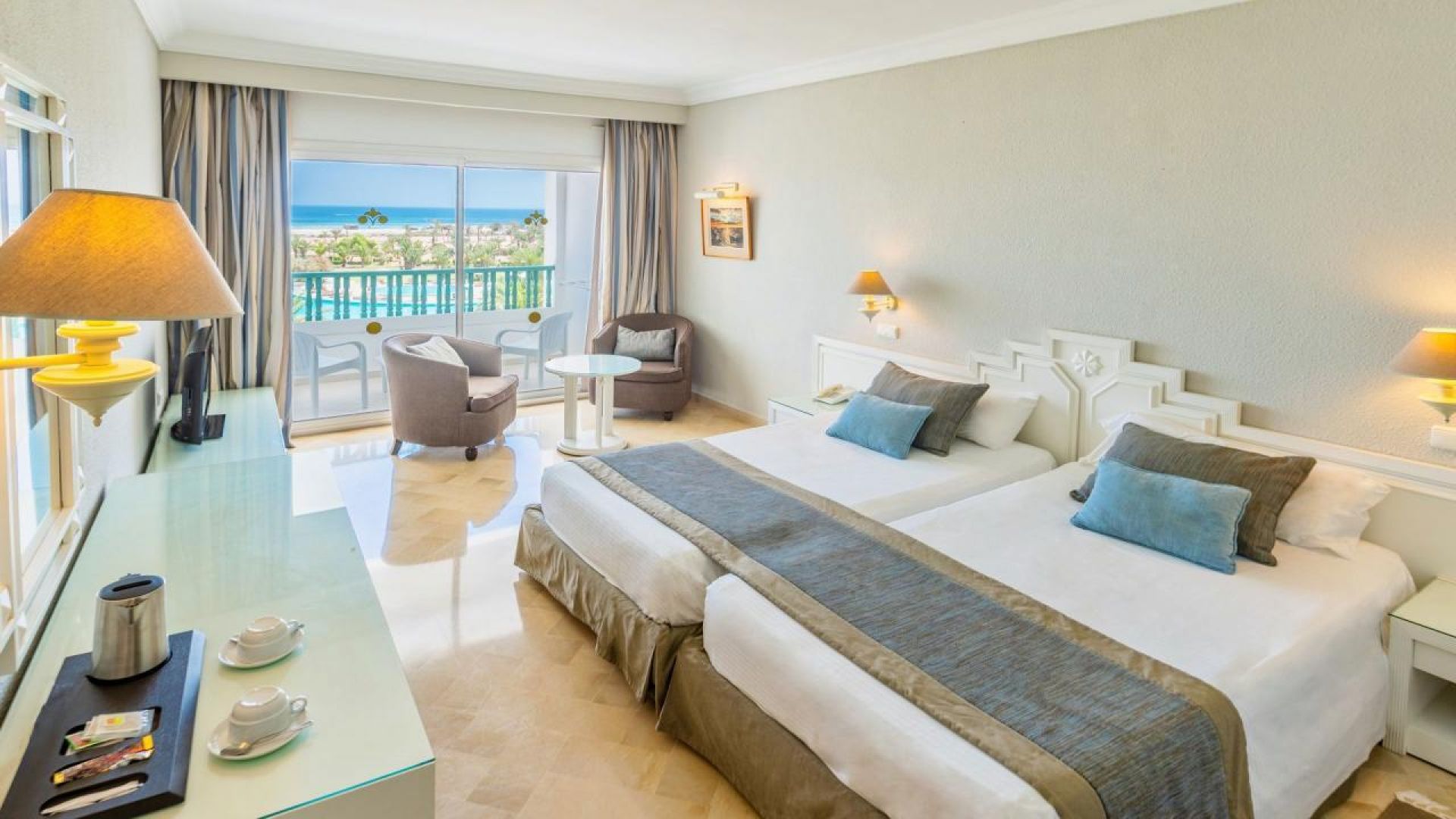 - 3 ресторанта a la carte (Тунизийска, Средиземноморска, Италианска кухня с доплащане.