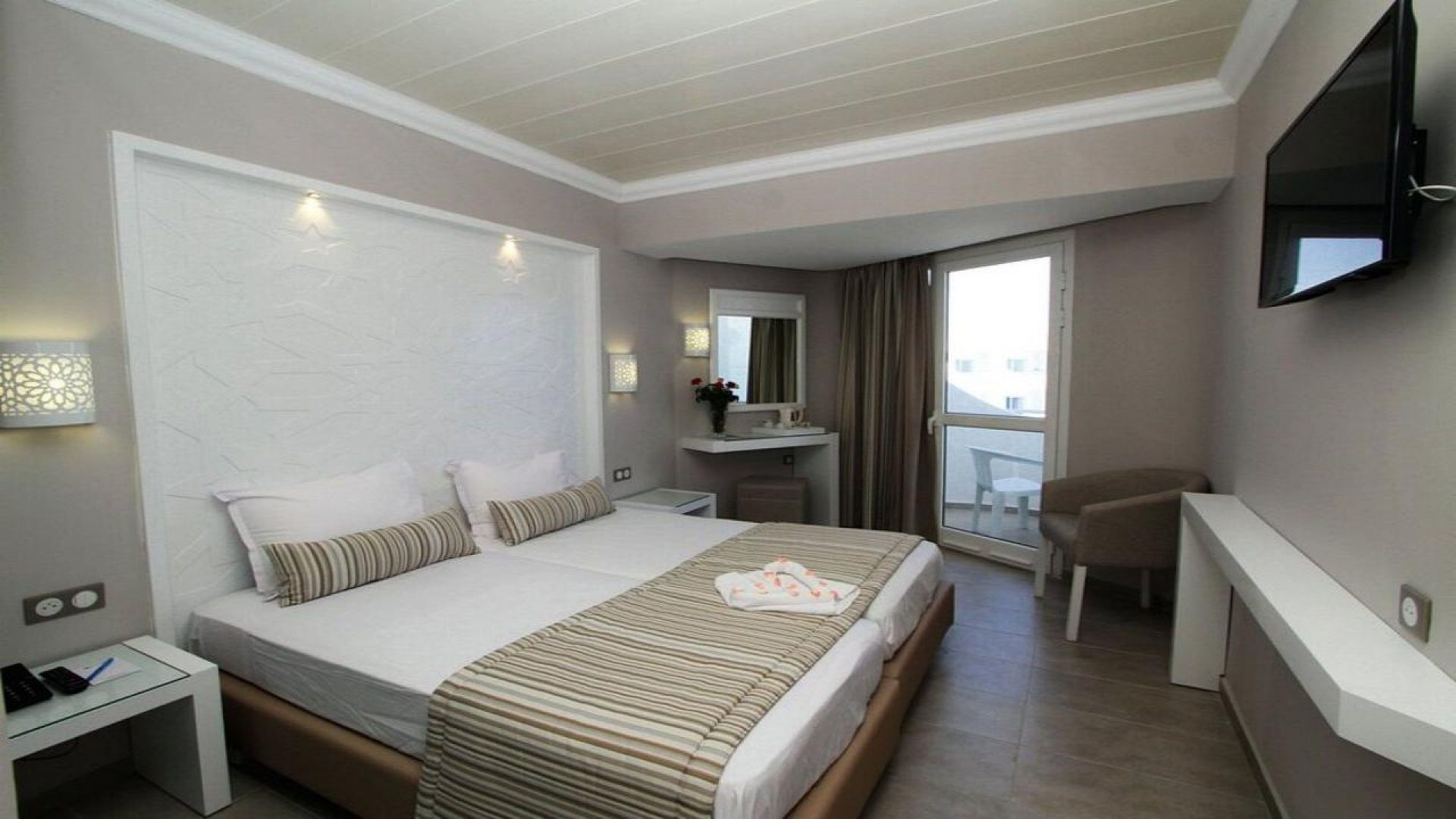 All Inclusive, няколко басейна, собствен аквапарк с водни пързалки, богата анимация, спортни терени и директен достъп до плажа. Хотелът е подходящ за семейства, особено с деца.