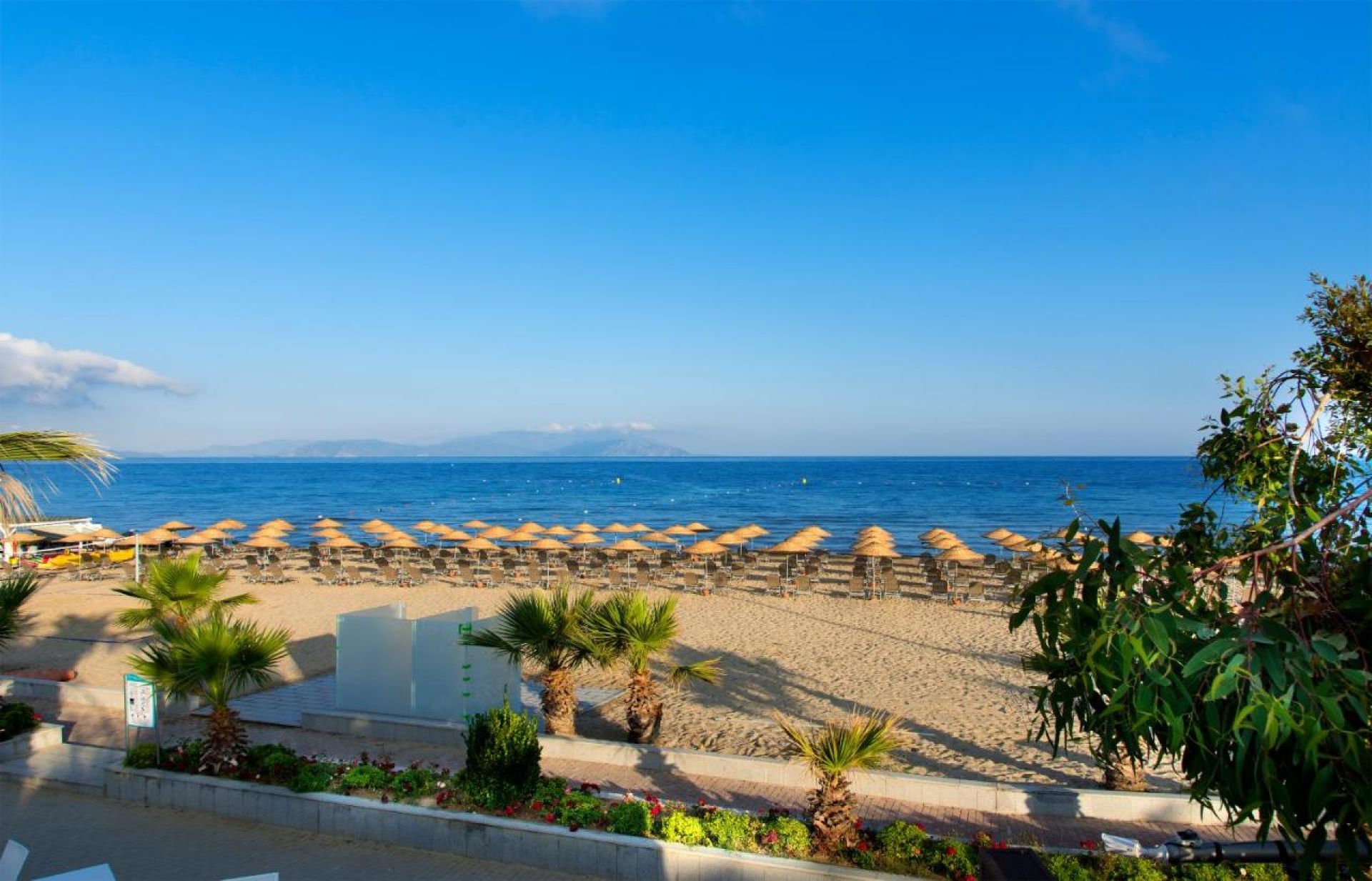 Собствен, пясъчен, притежаващ сертификат "Син флаг". Чадъри, шезлонги и плажни кърпи при басейна и на плажа - безплатно.