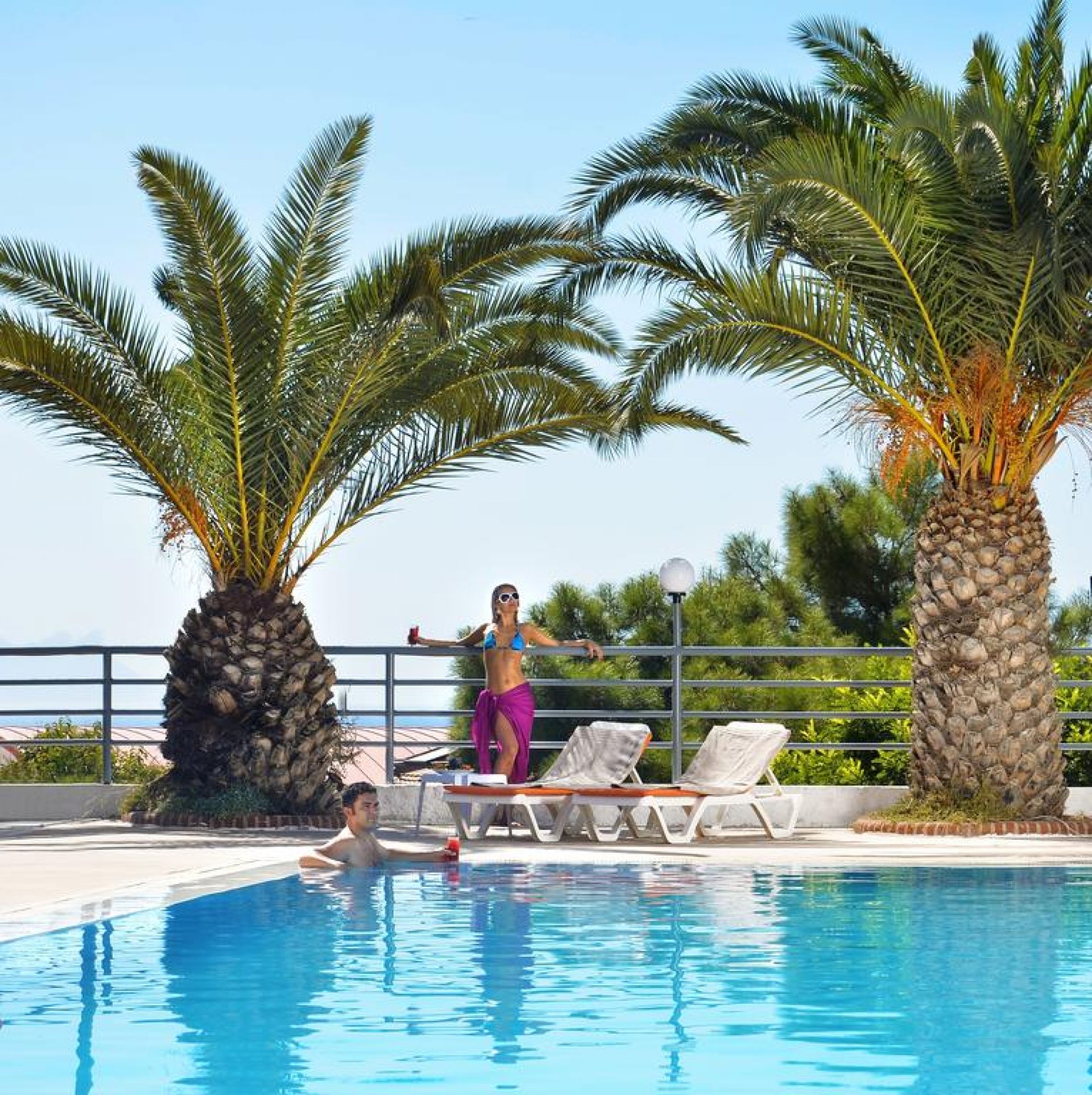 Основен ресторант, 2 бара, открит басейн, детски басейн, конферентна зала, магазин.