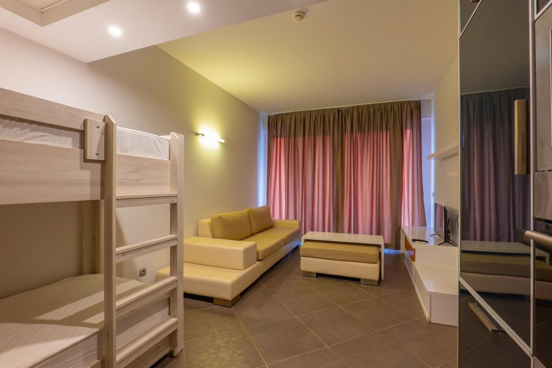 Хотелът разполага с 220 стаи, от които 87 стандартни стаи (спалня или две единични легла - 21 м²), 22 стаи с двуетажни легла (спалня и двуетажни легла - 27 м²), 102 фамилни стаи (една спалня и една всекидневна с разтегателен диван или две спални - 44 м²) , 5 пентхауса (спалня и една вскидневна - 68 м²), 4 пенхтхауса (две спални и една всекидневна - 72 м²). Всички стаи са оборудвани с климатик, телевизор, телефон, баня с душ, сешоар, минибар (безплатен еднократно при настаняване, ежеднвено зареждане с минерална вода), сейф (безплатен), балкон. Почистване на стаите - всеки ден, смяна на кърпи и спално бельо - 3 пъти седмично.