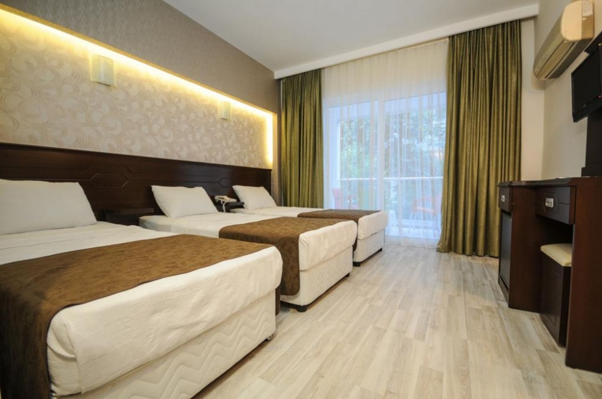 Хотелът разполага общо със 150 стаи.Всички стаи са оборудвани с климатик, телевизор, телефон, баня с душ, сешоар, мини бар, сейф, интернет, балкон. Почистване на стаите – всеки ден, смяна на спалното бельо и кърпите – 2 пъти в седмицата. За децата – Детски басейн. Безплатни услуги – Фитнес, тенис на маса, дартс, табла. Платени услуги – Масаж, сауна, турска баня, салон за красота, пералня, химическо чистене, лекар, игрална зала. Плаж: Градски, пясъчен – чадъри и шезлонги на плажа – срещу заплащане, а при басейна – безплатно.