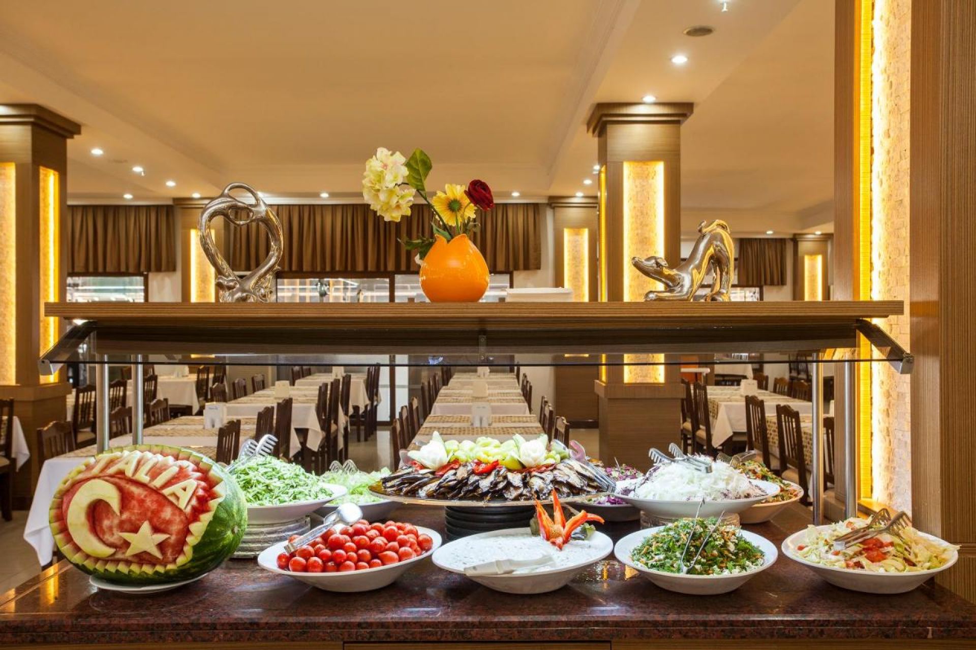 Основен ресторант, 1 а-ла-карт ресторанта (срещу заплащане, с предварителна резервация), 2 снек ресторанта, сладкарница, 8 бара, 3 открити басейна, аквапарк с 4 водни пързалки за възрастни и 3 водни пързалки за деца, амфитеатър, СПА център, дискотека (срещу заплащане), 1 конферентна зала, магазини, паркинг.