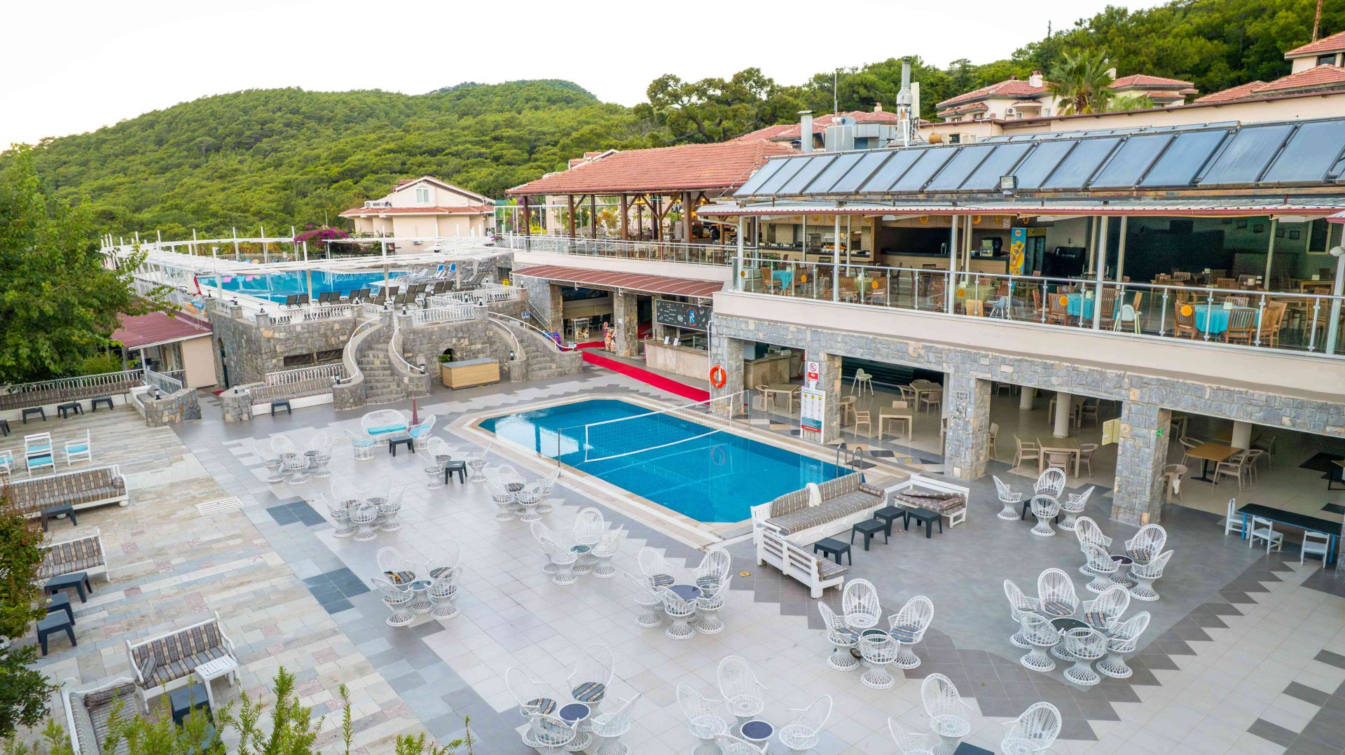 Хотелът се намира на 60 км от летище Даламан, на 45 км от Саклъкент и Далян, на 5 км от центъра на Фетие, на 5 км от световноизвестния плаж Олудениз. Построен е на 400 м надморска височина върху обща площ от 16 000 м2.
