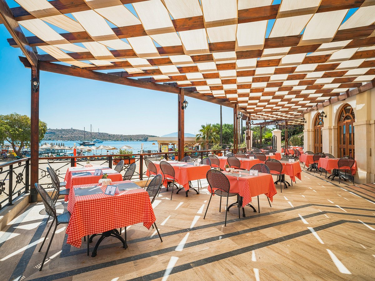 Хотелът е разположен на 35 км от летище Милас, на 4 км от центъра на Бодрум, в района на Гюмбет, на брега на морето. Разполага с обща площ 38 000 m², последно реновиран през 2023 г.