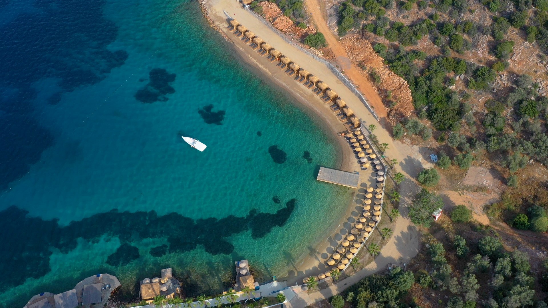 Собствен пясъчен плаж и платформа - чадъри, шезлонги, плажни кърпи и матраци на плажа и при басейна - безплатно.