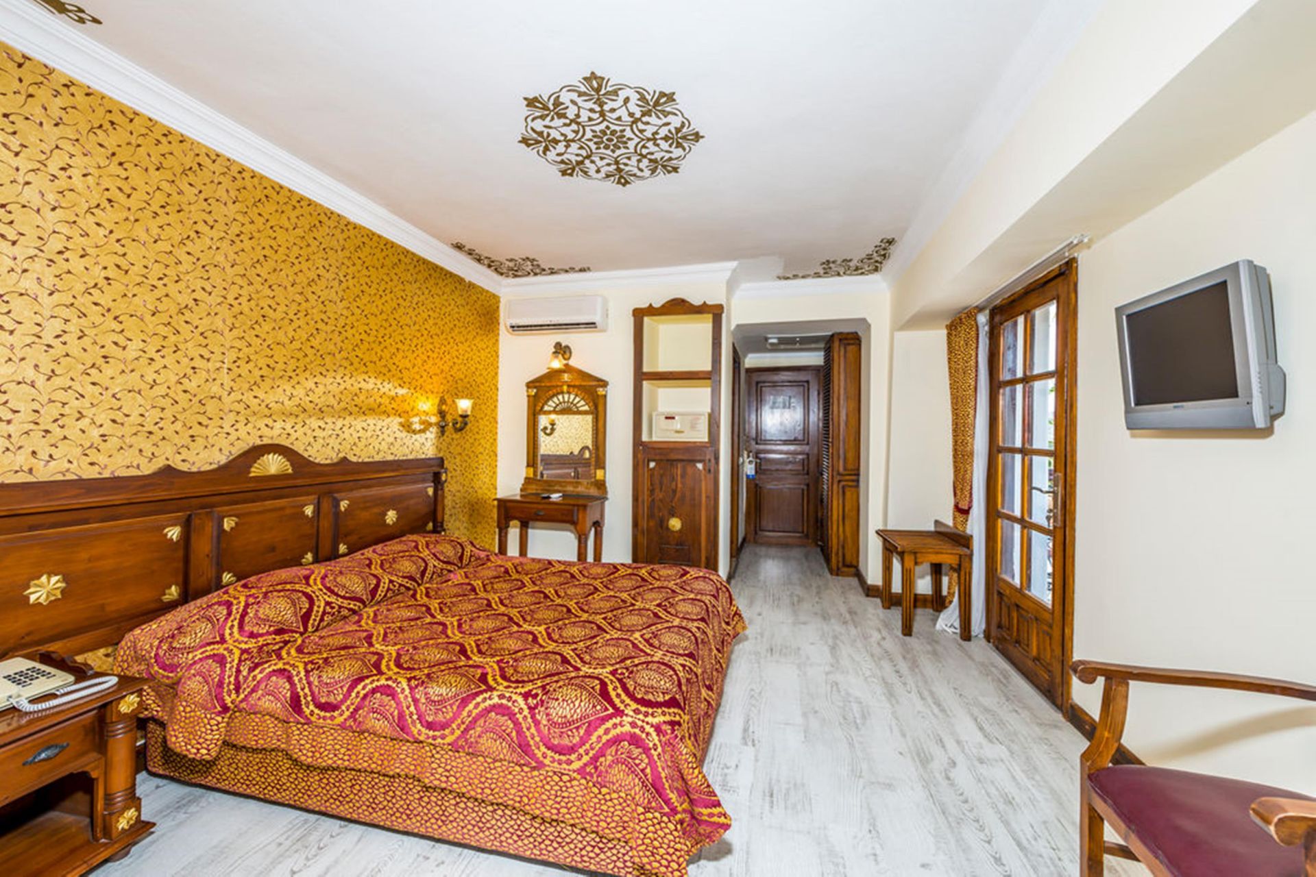 Всички стаи са оборудвани с климатик, телевизор, телефон, баня с душ, мини бар (празен), сейф (платен), френски балкон (гледка градина).