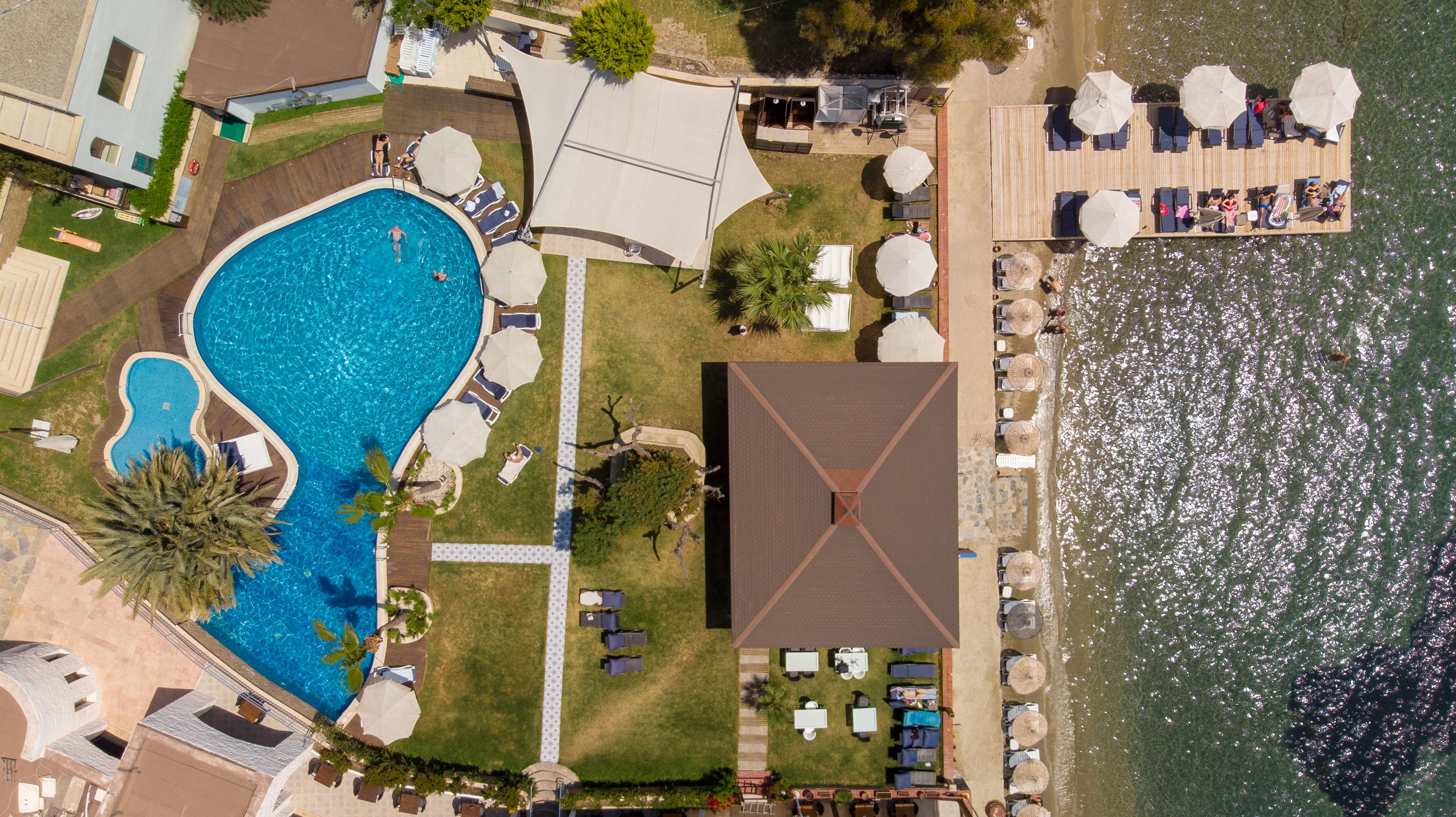 Хотелът се намира на 34 км от летише Милас, на 3 км от центъра на Бодрум в района на Гюмбет, с площ от 5.500 m², на брега на морето. В непосредствена близост е до крайбрежна алея и нощния живот на Гюмбет.