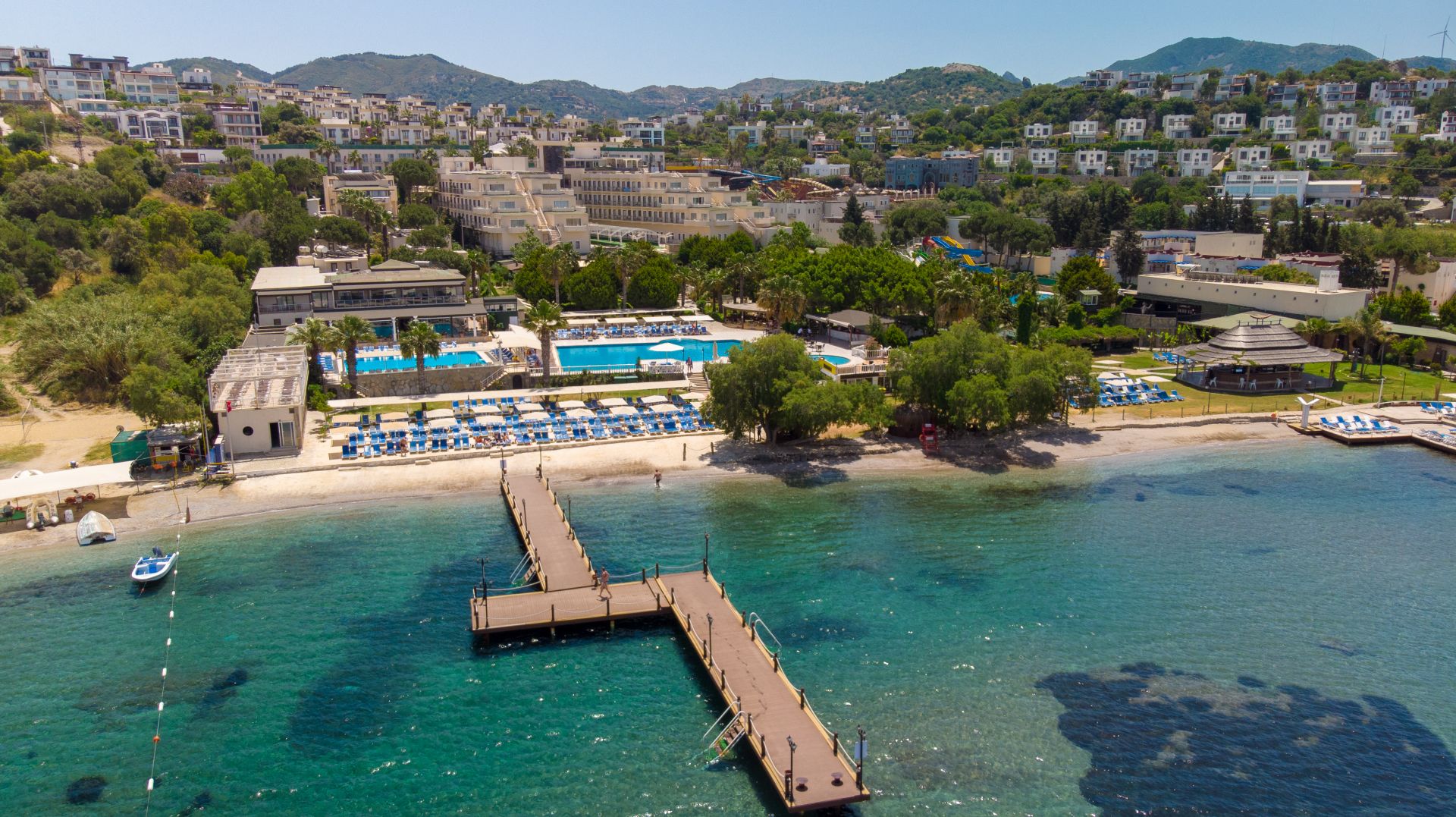 Намира се на 40 км от летище Бодрум, на 20 км от центъра на Бодрум, на 2 км от центъра на Ялъкавак, на брега на морето. Построен 2003 г., на обща площ от 16.000 м². Реновиран 2019 г.