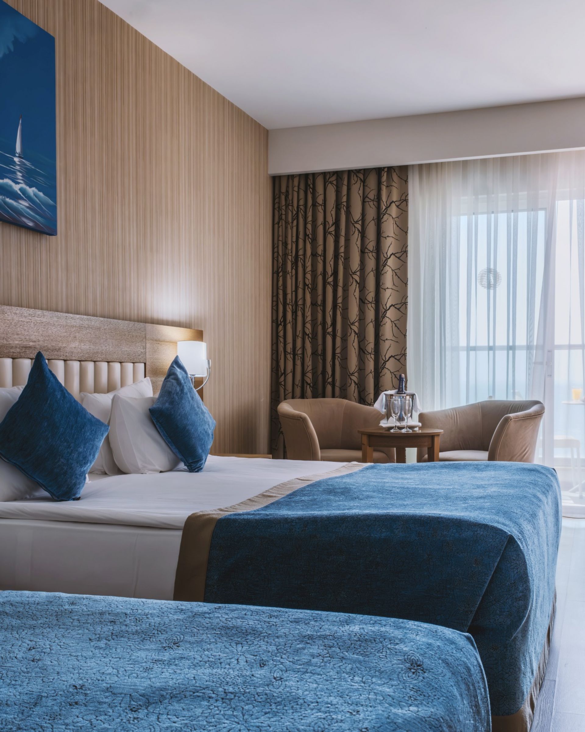 Хотелът разполага с 382 стаи. Всички стаи са обзаведени с: климатик, телевизор, баня с душ, сешоар, телефон, минибар, сейф, балкон.