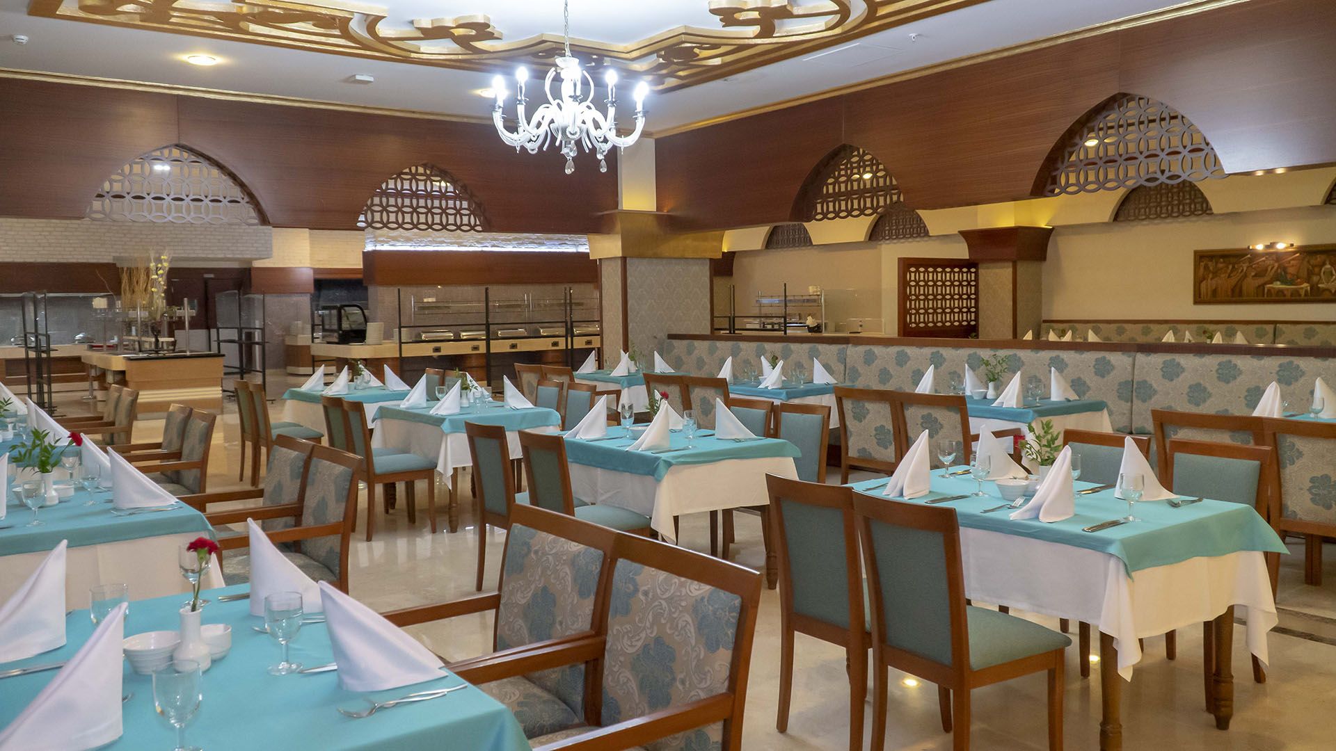 Основен ресторант, а ла карт ресторанти(турски и стек), 5 бара, дискотека, 3 открити басейна и 1 закрит басейн (отопляем), 3 водни пързалки, Спа център, 2 конферентни зали, магазини, пералня, фризьорски салон, лекар на повикване.Безплатни услуги: турска баня, сауна, фитнес, лека анимация, гала вечер (веднъж на 25 седмици), дискотека, степ, аеробика, плажен волейбол, водна гимнастика, тенис на маса, дартс, мини библиотека, WI-FI (на лоби). Платени услуги: масажи, водни видове спорт, игрални автомати, билярд, боулинг. За децата: детски клуб (за деца от 4 до 12 г.), детски басейн, детска площадка, детска анимация, мини-диско.