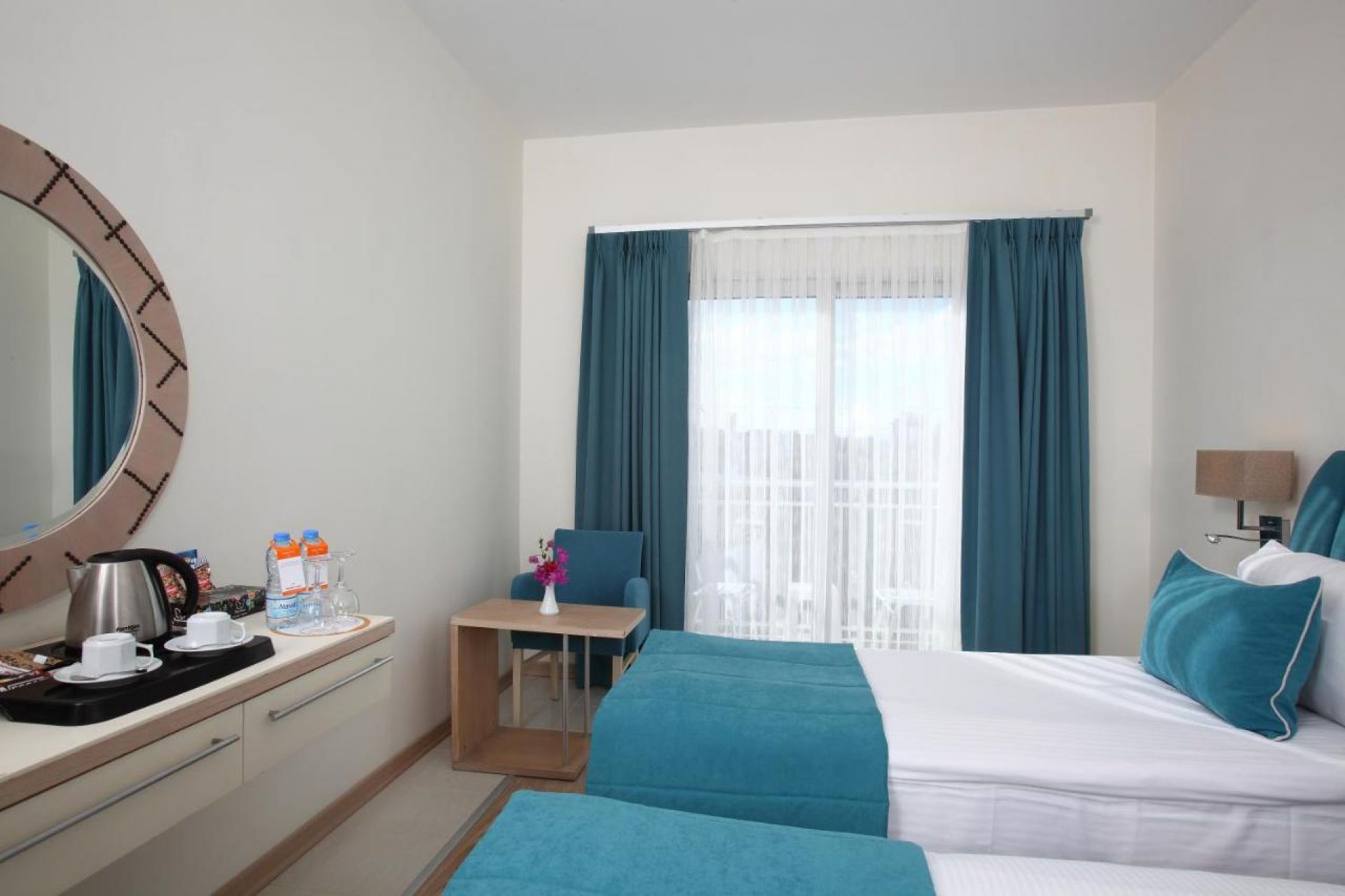 Хотелът разполага с общо 181 стаи, разположени в 3-етажни сгради. Standard room (18 м²), Family room (22 м²).