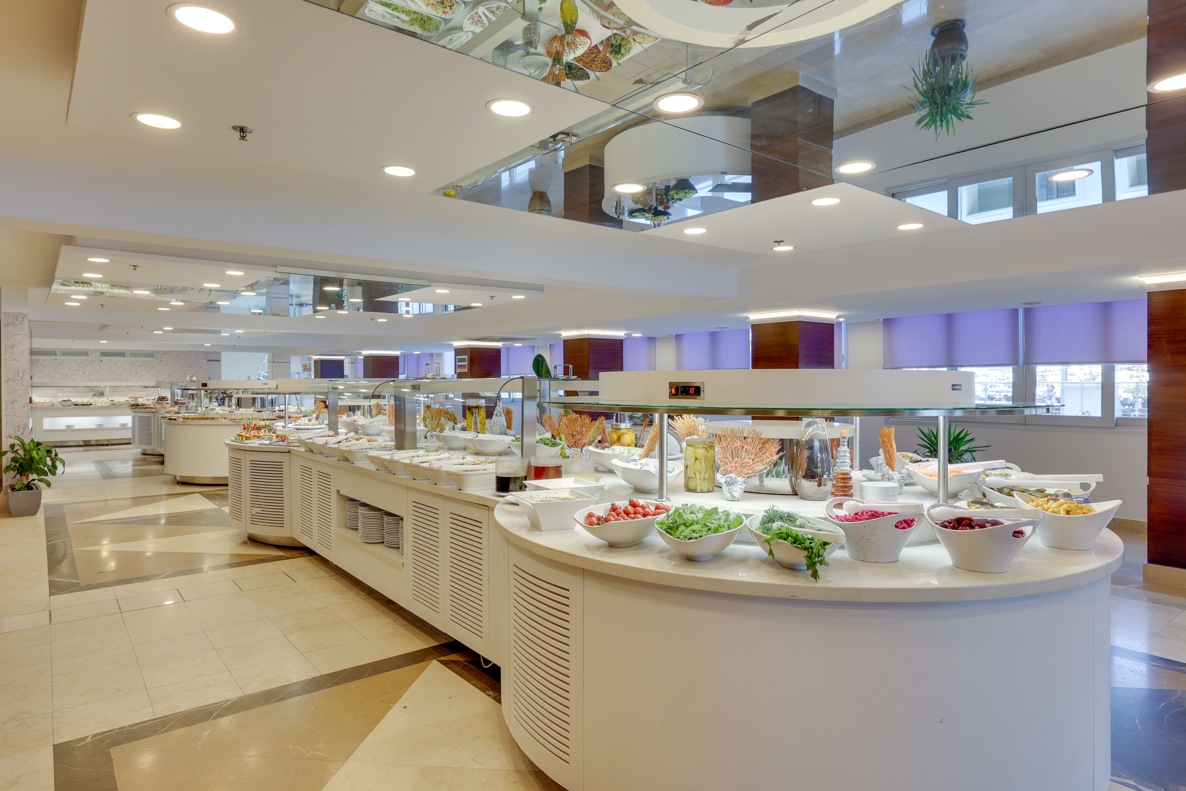 Ultra All Inclusive - закуска, обяд, вечеря и междинни хранения на шведска маса. Местни и някои вносни алкохолни и безалкохолни напитки - без лимит (съгласно концепцията на хотела). Турското кафе се предлага безплатно.