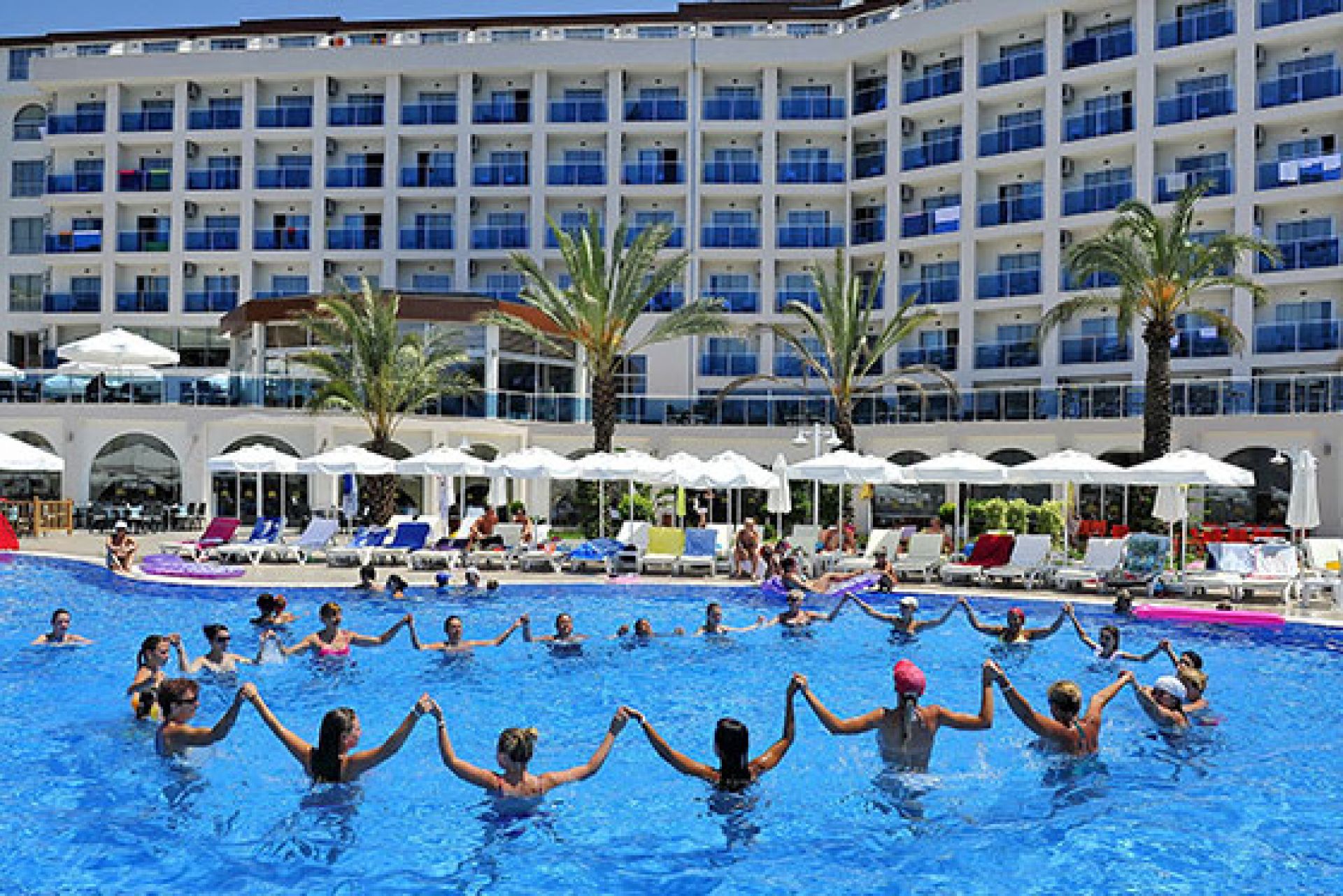 Ресторант (бюфет), бар, диско бар, фитнес зала, аеробика, турска баня, сауна, масаж, фризьорски салон, козметичен салон, пералня, открит басейн, плажен волейбол, тенис на маса, билярд/снукър, водни спортове, паркинг, плаж - собствен, пясък. За децата: детски басейн, 3 водни пързалки ,детска площадка, мини клуб,Бар на плажа - безплатно.
